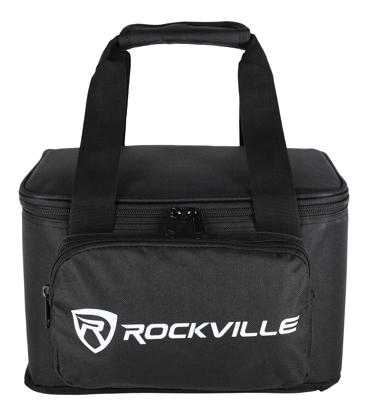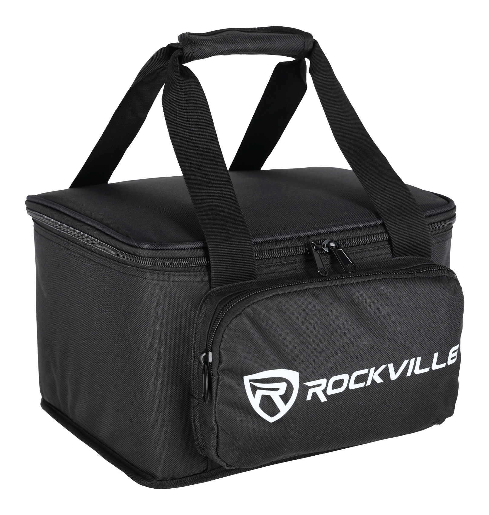 The Rockville RLBF4 bag’s zippered front compartment provides extra space for remotes and accessories. Constructed with a combination of semi-rigid plastic and foam padding, it ensures your gear is protected from bumps and bruises while maintaining a lightweight profile. The durable polyester construction, along with dual zippers and carry handles, makes it an ideal choice for DJs on the go, weighing just 2.54 lbs. when empty. Whether you’re heading to a gig or storing your gear, the Rockville RLBF4 offers robust protection and convenient portability.