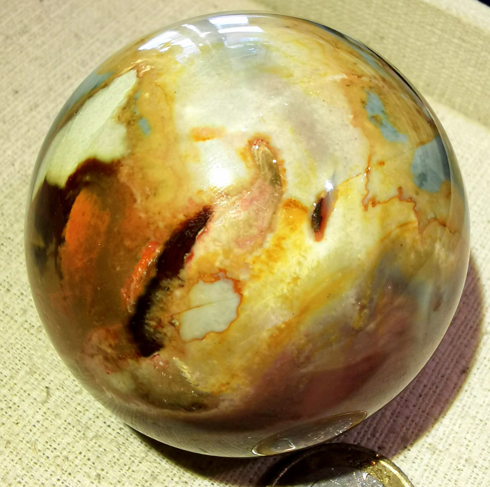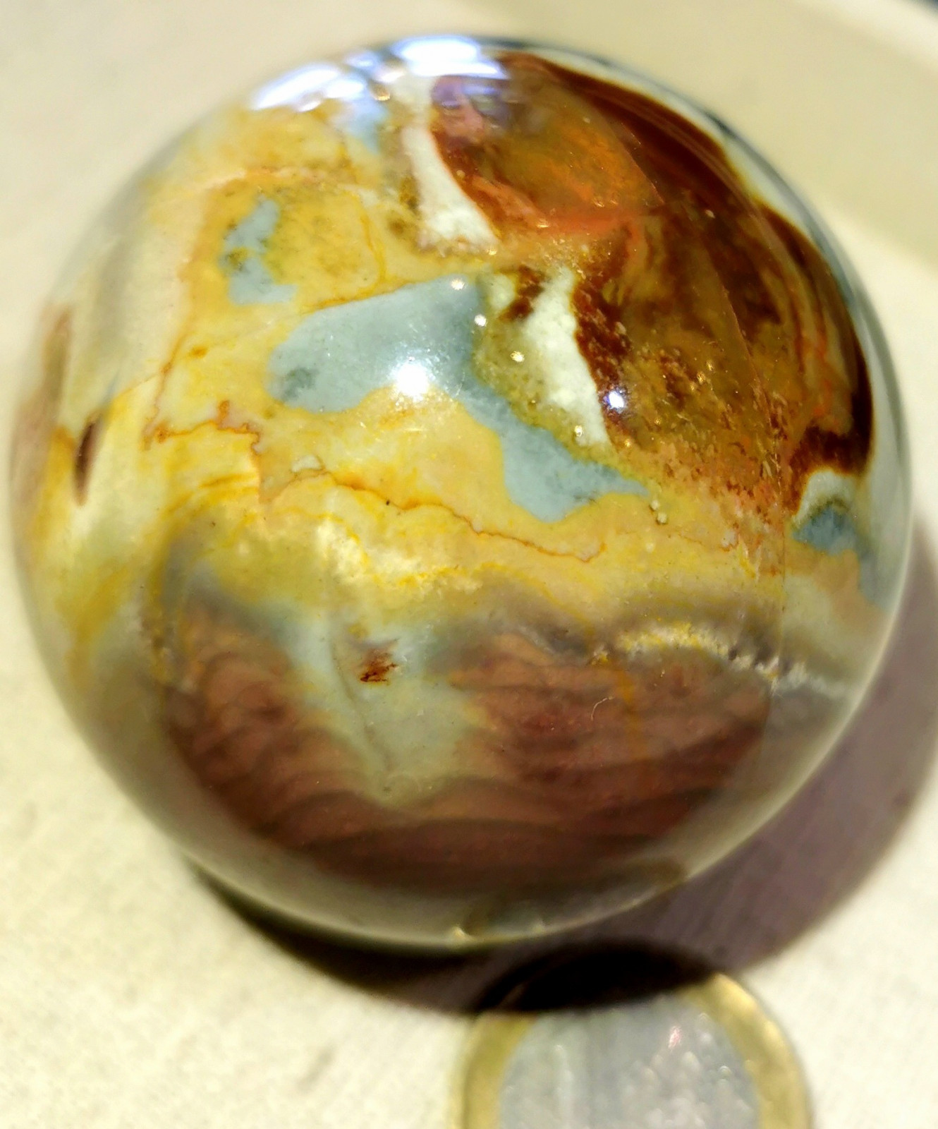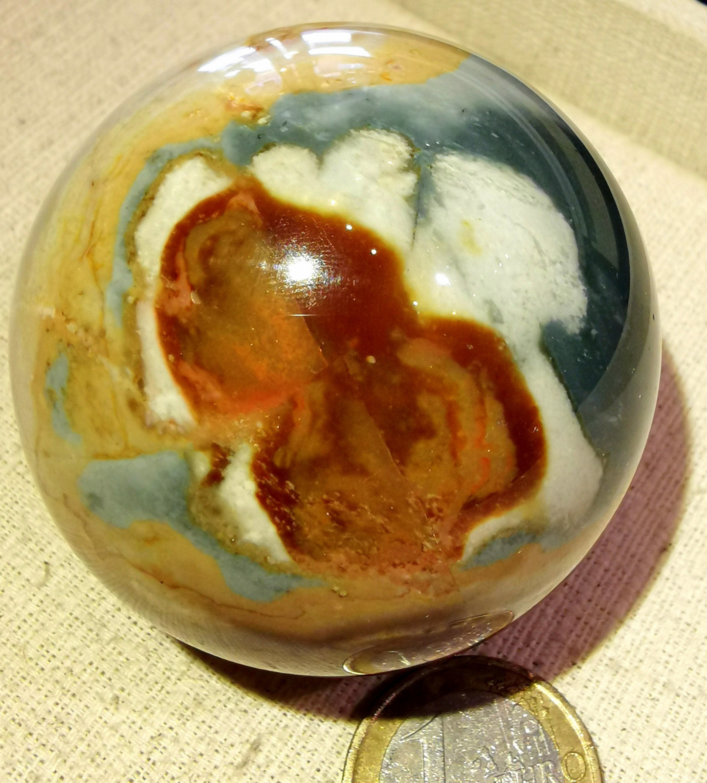 wunderbare Polychrom Jaspis Kugel aus Madagaskar, poliert, Durchmesser ca. 55 mm, tolle Maserung, Gewicht ca. 225 Gramm. ebay geht auf meine Kosten.