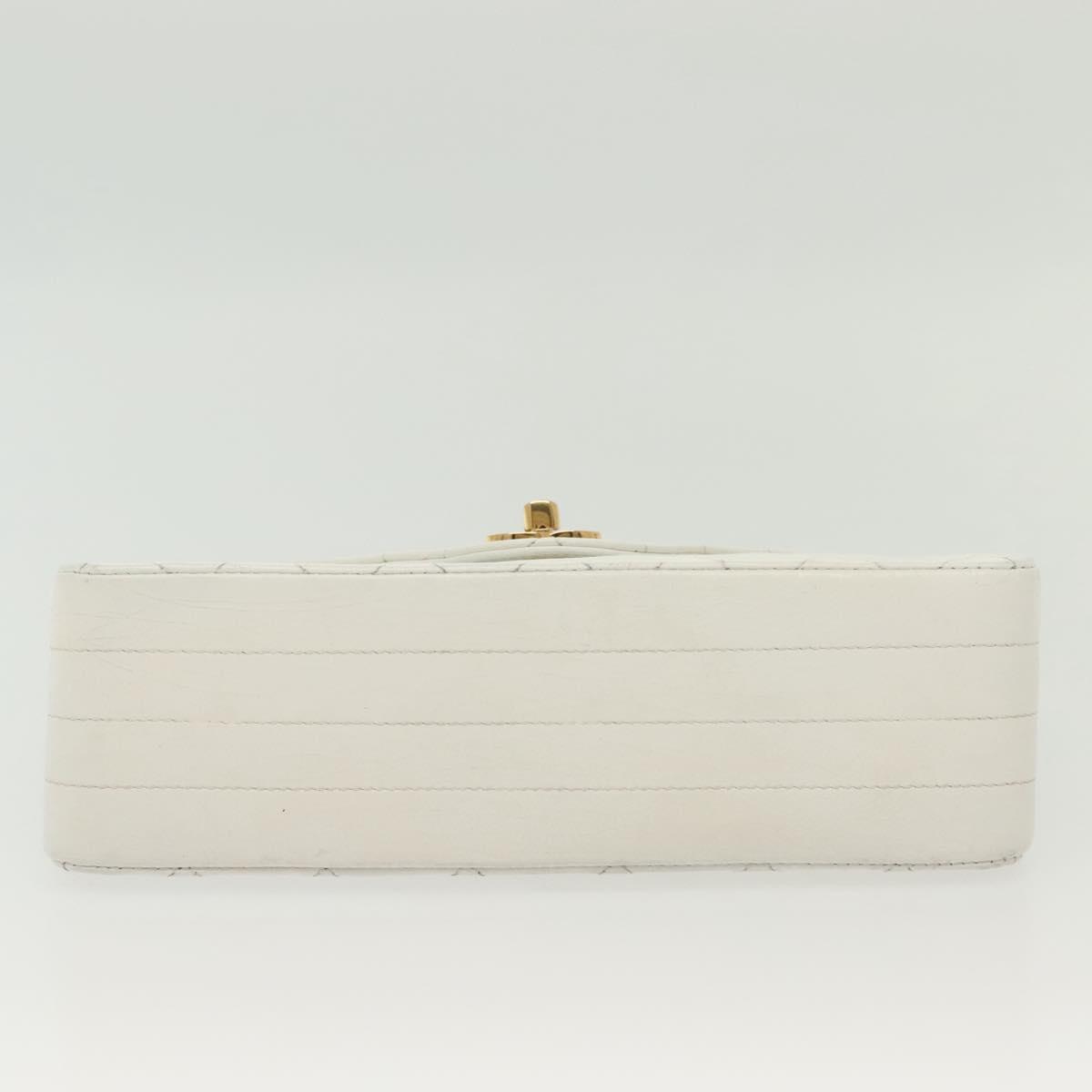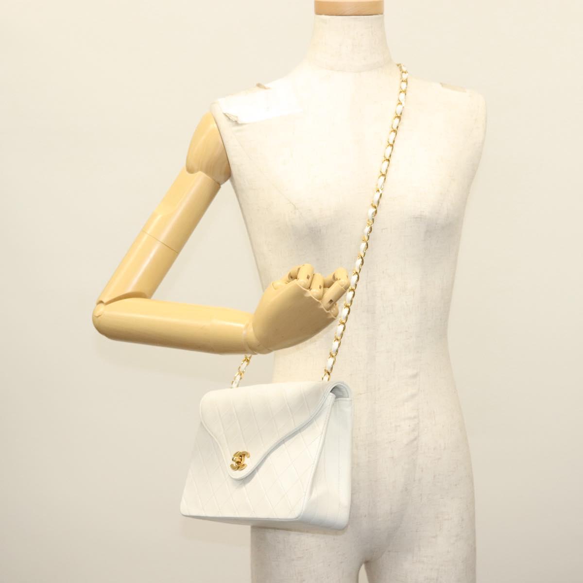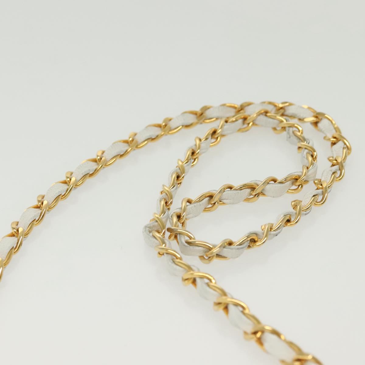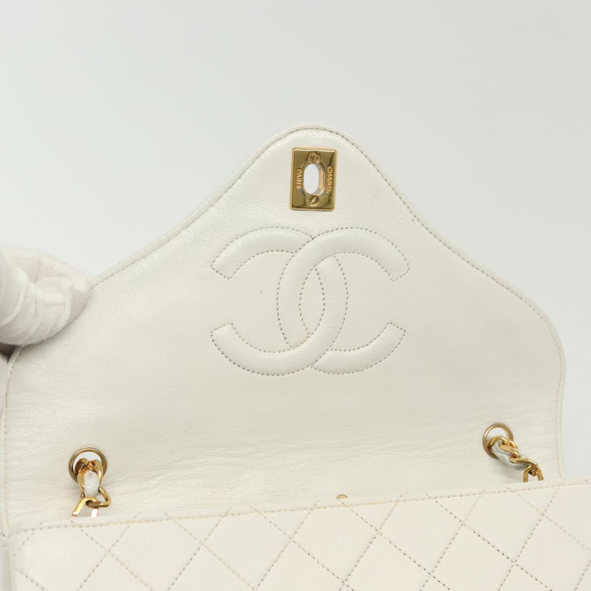 CHANEL Matelasse Chain Shoulder Bag Lamb Skin White Gold CC Auth bs28860