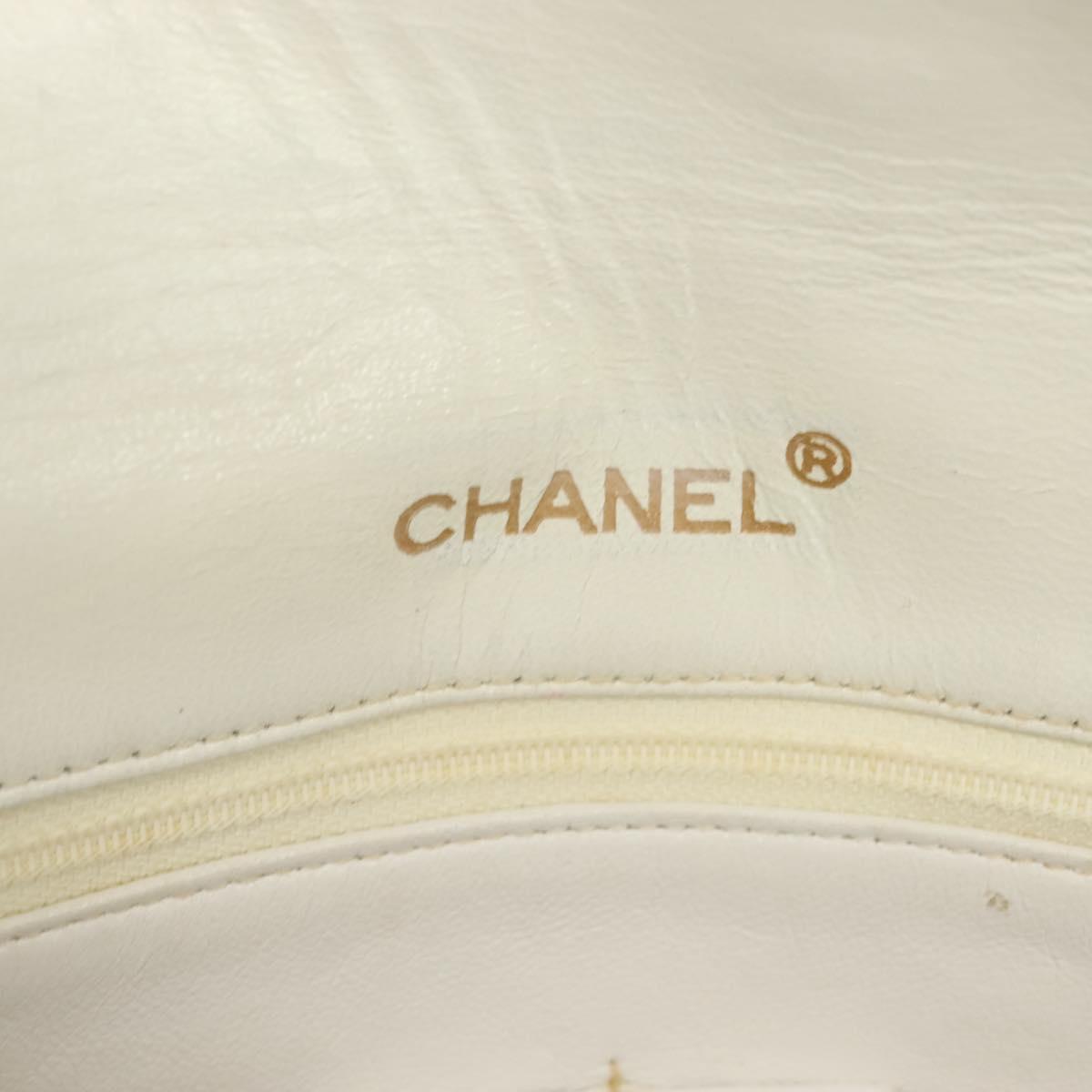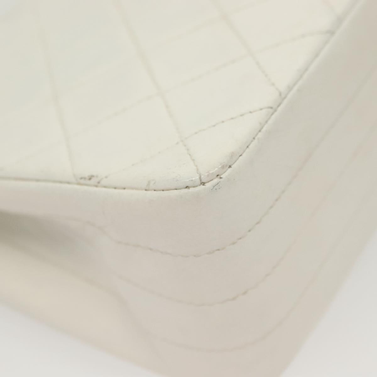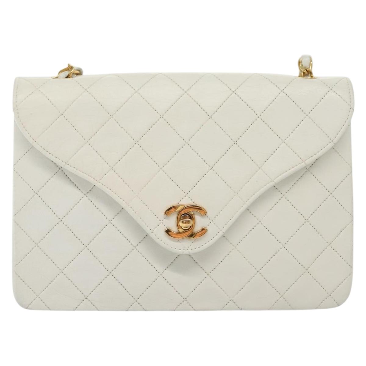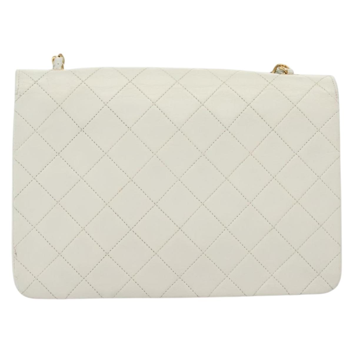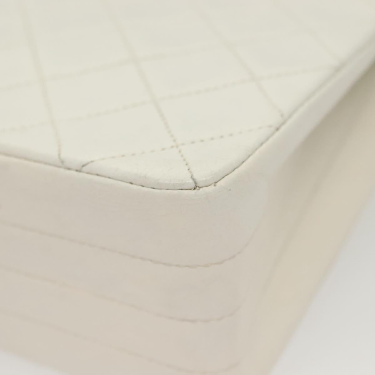 CHANEL Matelasse Chain Shoulder Bag Lamb Skin White Gold CC Auth bs28860