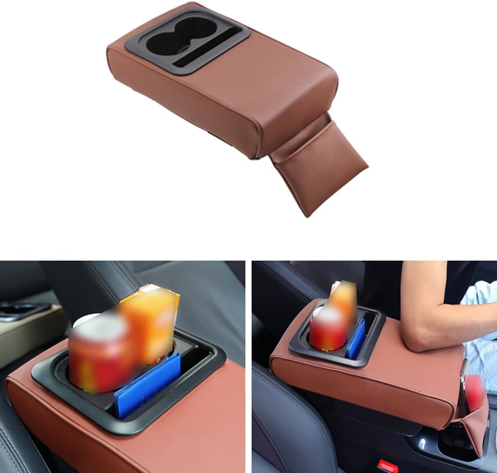 Auto Center Console Armrest Pillow, Car Armrest Cover Cushion with Cup and Phone Holder, Memory Foam Armrest Cushion Universal Fit for Most Cars
