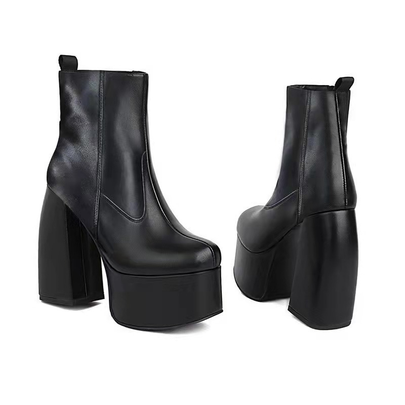 Punk style shoes winter autumn high heel long knee thick platform microfiber