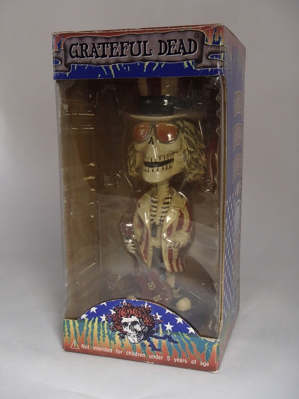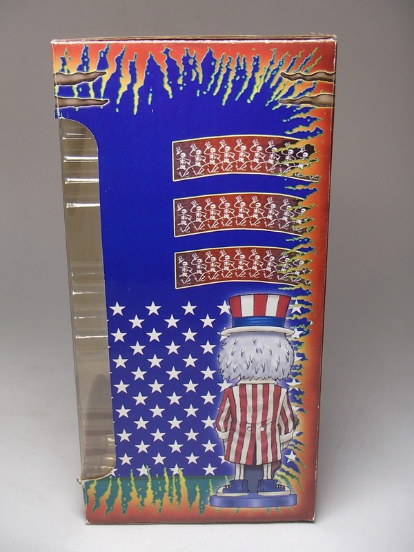 Listed here is a 2002 Grateful Dead Uncle Sam bobblehead. This limited edition collectible features the iconic Uncle Sam character and is made of resin.This GREAT piece showcases intricate details and is a valuable addition to any collection of Grateful Dead memorabilia. With its unique design and limited availability, this piece is sure to be a treasure for fans of the band and collectors.