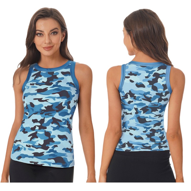 Made from a blend of polyester and spandex, this tank top is stretchy and offers a comfortable and snug fit, adapting well to body movements.