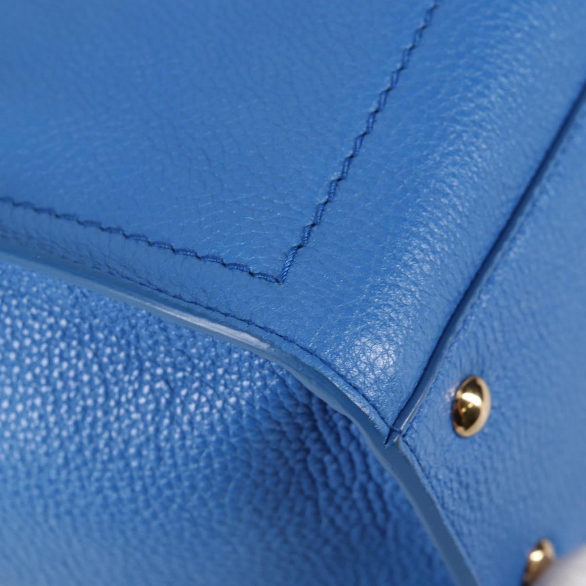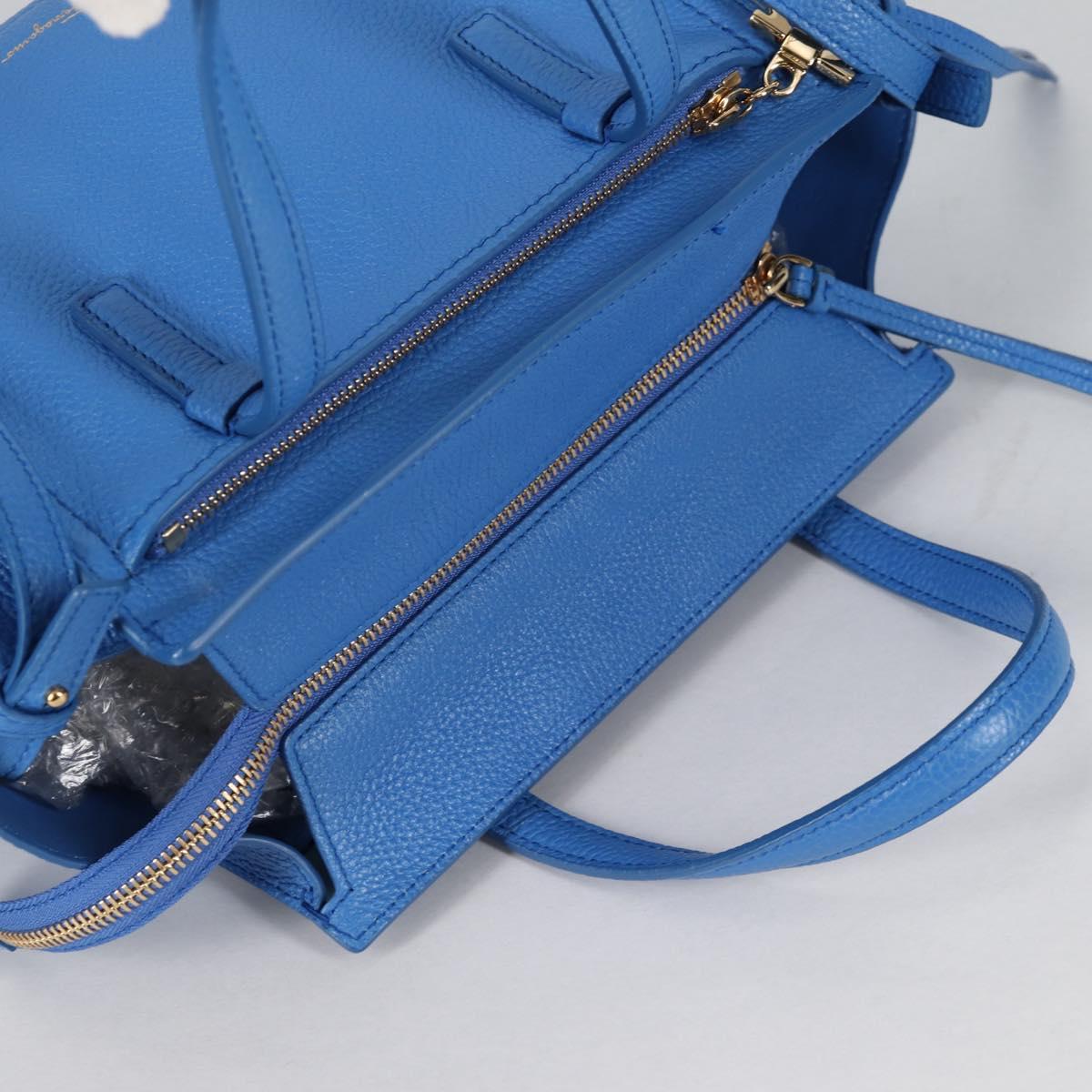Salvatore Ferragamo Gancini Hand Bag Leather 2way Blue Gold Auth 140859V