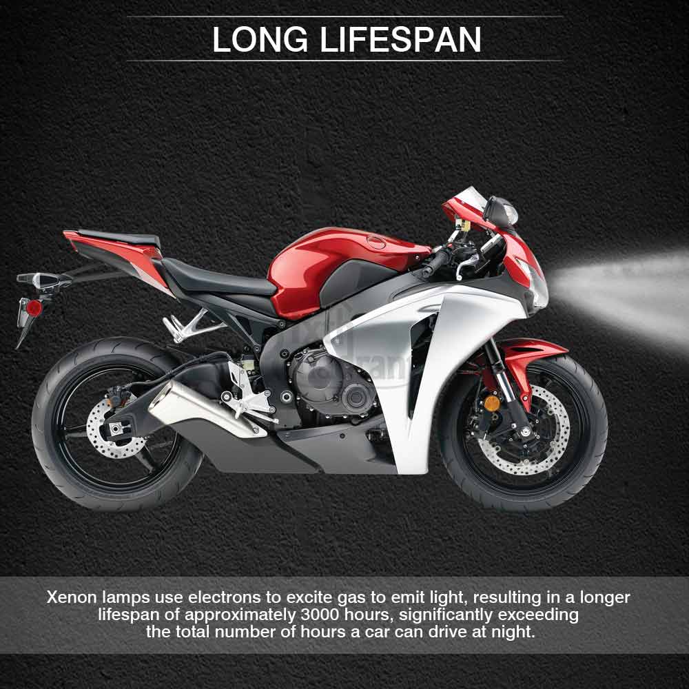2.Long lifespan: Xenon lamps use electrons to excite gas to emit light, resulting in a longer lifespan of approximately 3000 hours, significantly exceeding the total number of hours a car can drive at night.And halogen lamps only last for 500 hours.