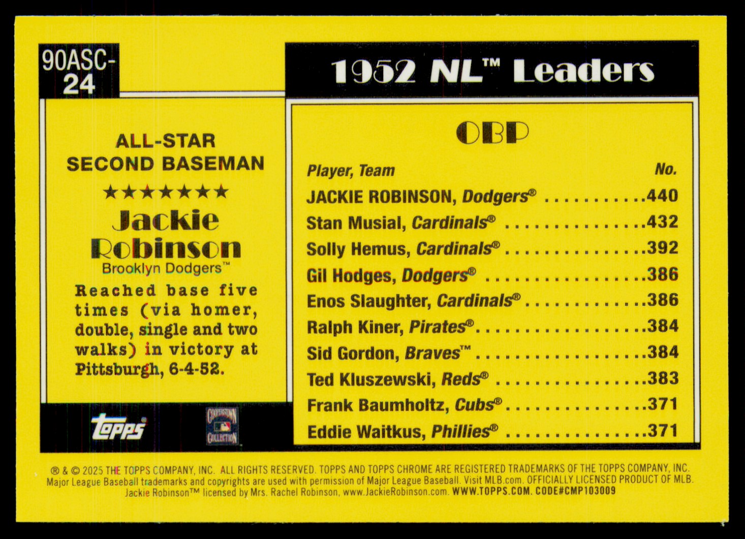 | 2025 Topps Chrome Jackie Robinson Mojo Brooklyn Dodgers #90ASC-24 | ||||||||||||||||||