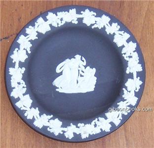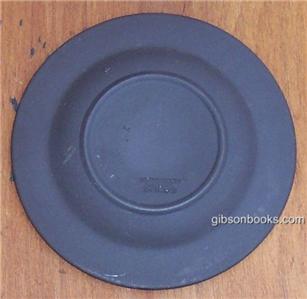 Vintage Wedgwood China Black Basalt Jasperware Small Dish with Classical Design in Center. Dish is 4 1/4" across. Good condition.