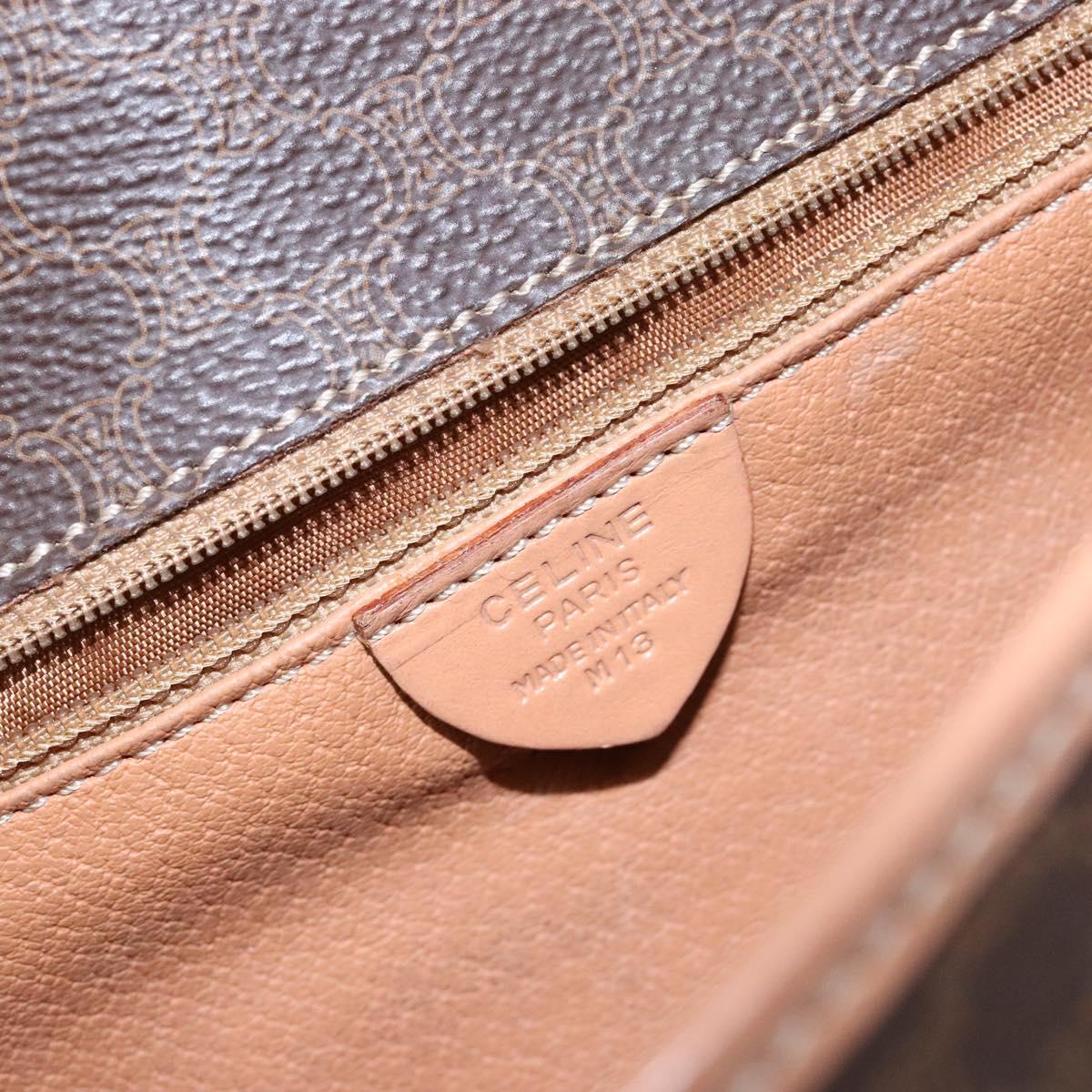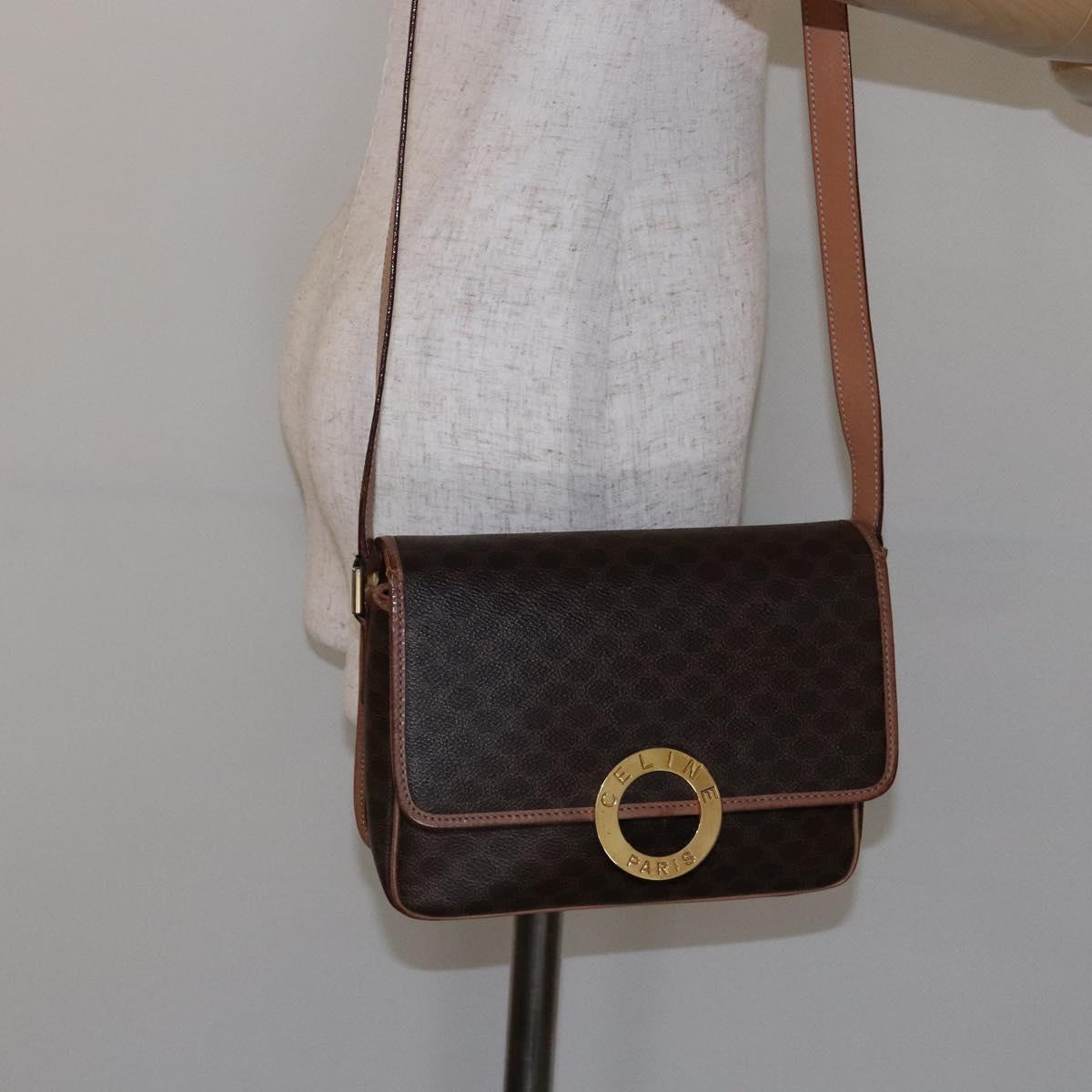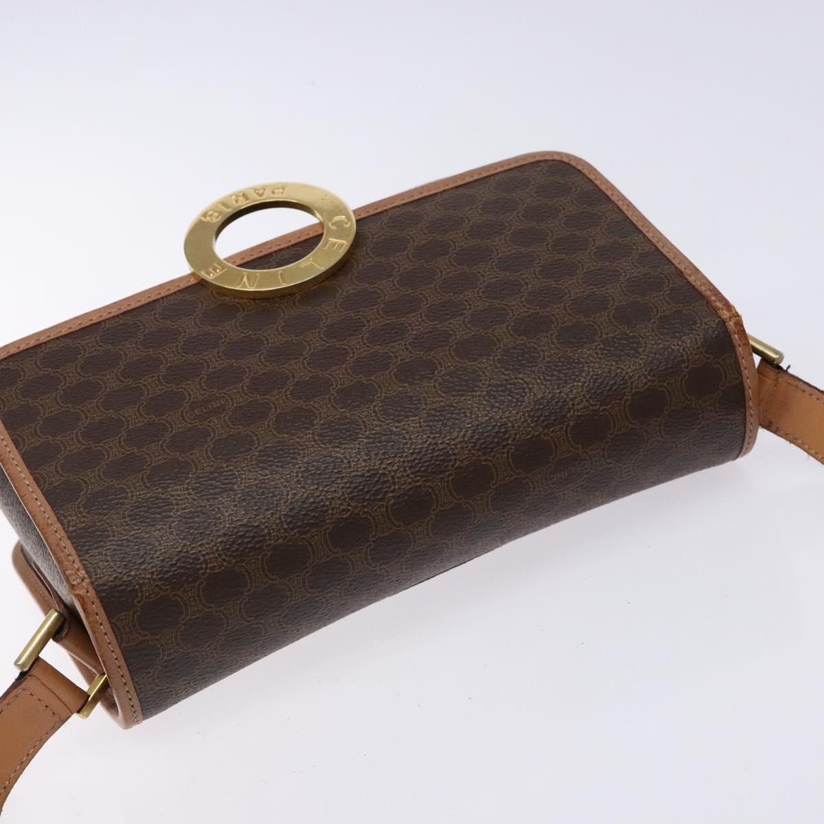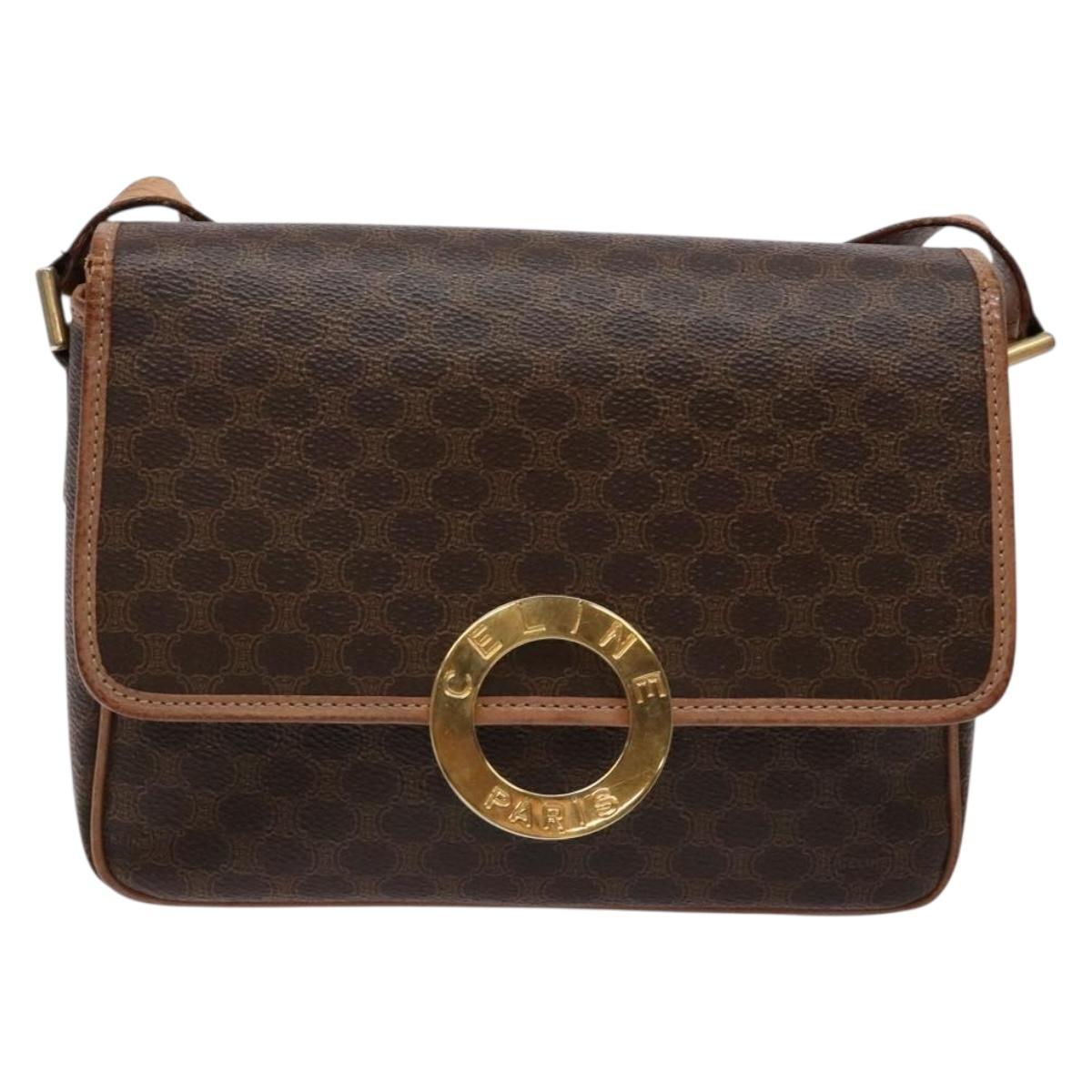 CELINE Macadam Canvas Circle Shoulder Bag PVC Leather Brown Gold Auth 140226