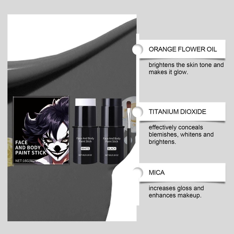 The black and white color combination is classic and versatile, suitable for creating various looks like clown, skeleton, and skull for cosplay.