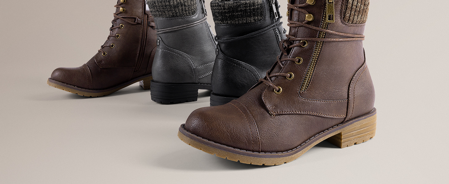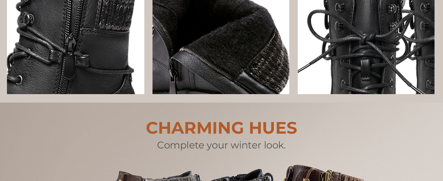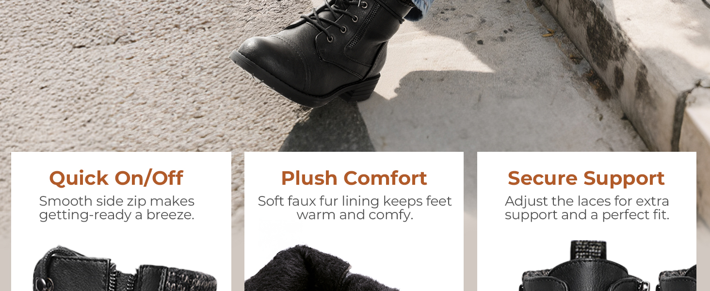 Convenient & Secure Fit: Featuring a soft vegan leather upper, lace-up front, and functional inner side zipper, making them easy to slip on and off.