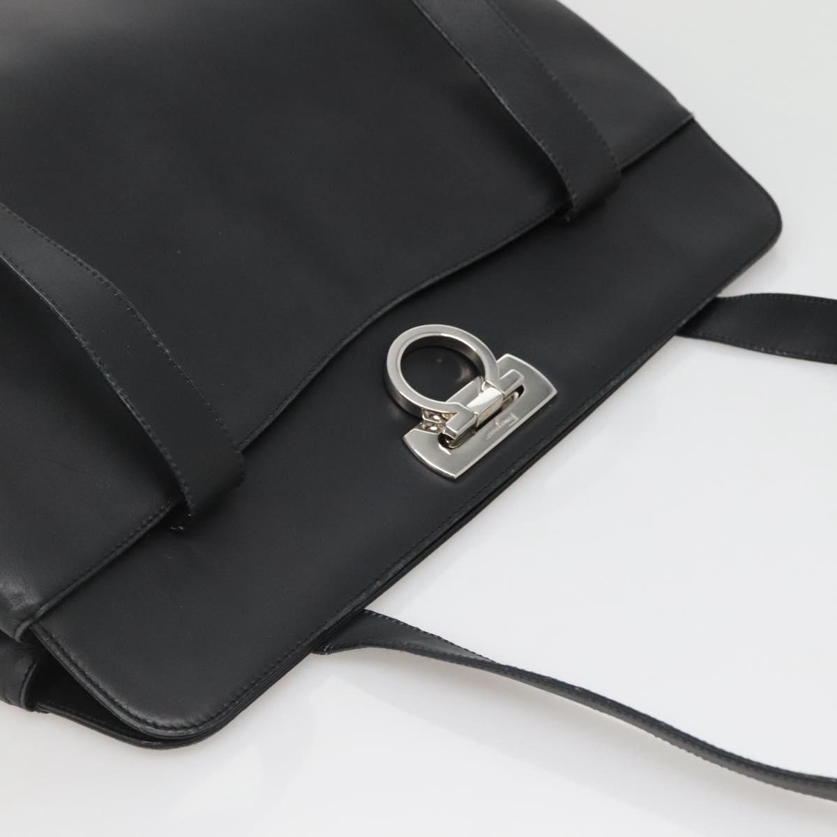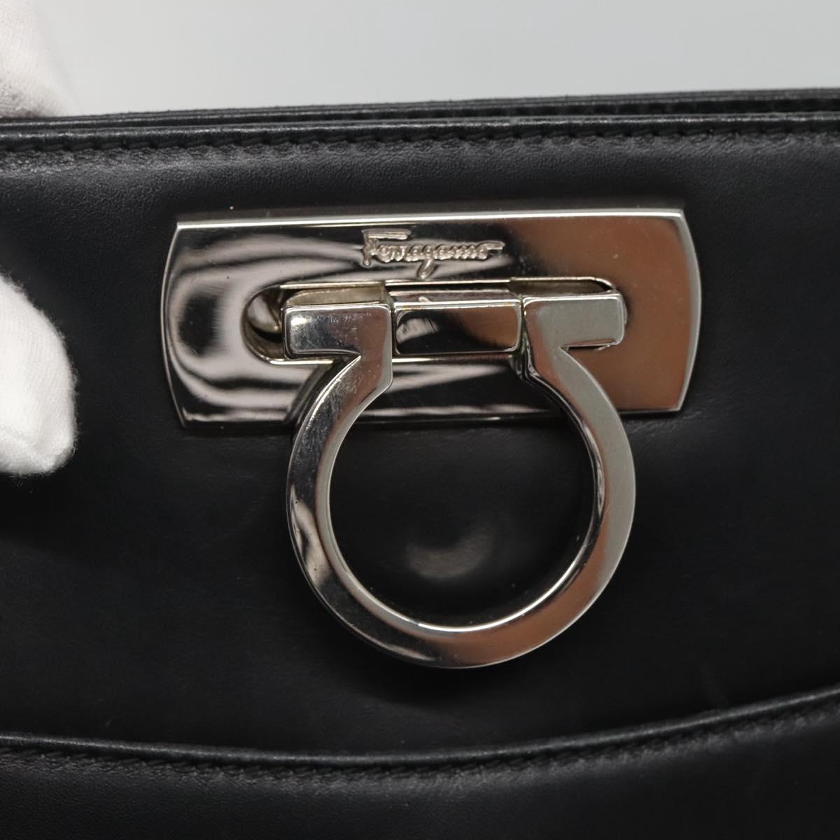 Salvatore Ferragamo Gancini Shoulder Bag Leather Black Silver Auth 141108