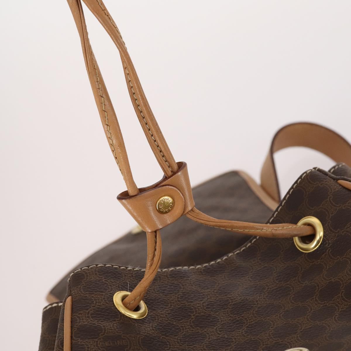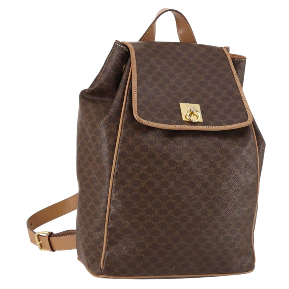 CELINE Macadam Canvas Backpack PVC Leather Brown Gold Auth ep10649