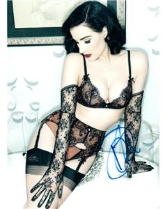 A really nice photo signed by Dita Von Teese. This photo is really nice and comes with a COA with a Lifetime Guarantee of Authenticity. Your order will be packaged carefully with several pieces of cardboard to help ensure it is protected while in the mail to you.