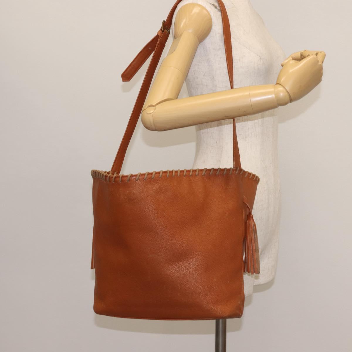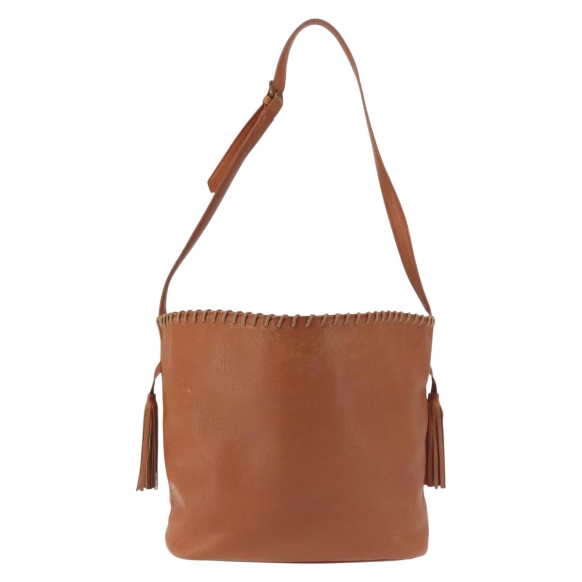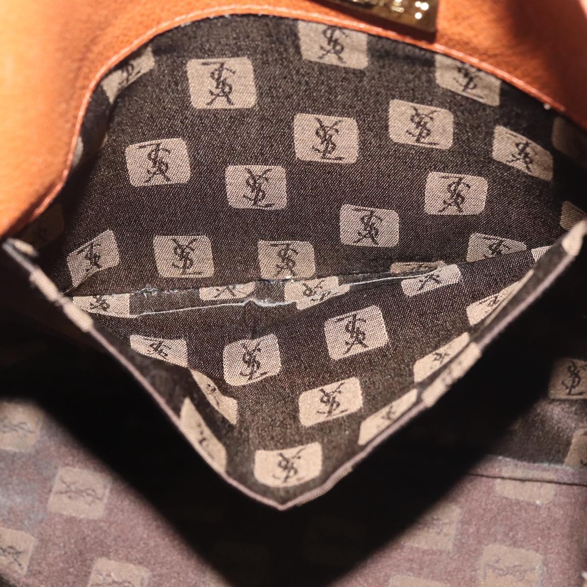 SAINT LAURENT Shoulder Bag Leather Brown Gold Auth SW1562