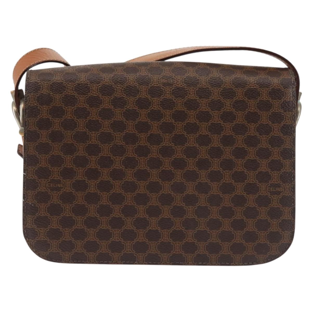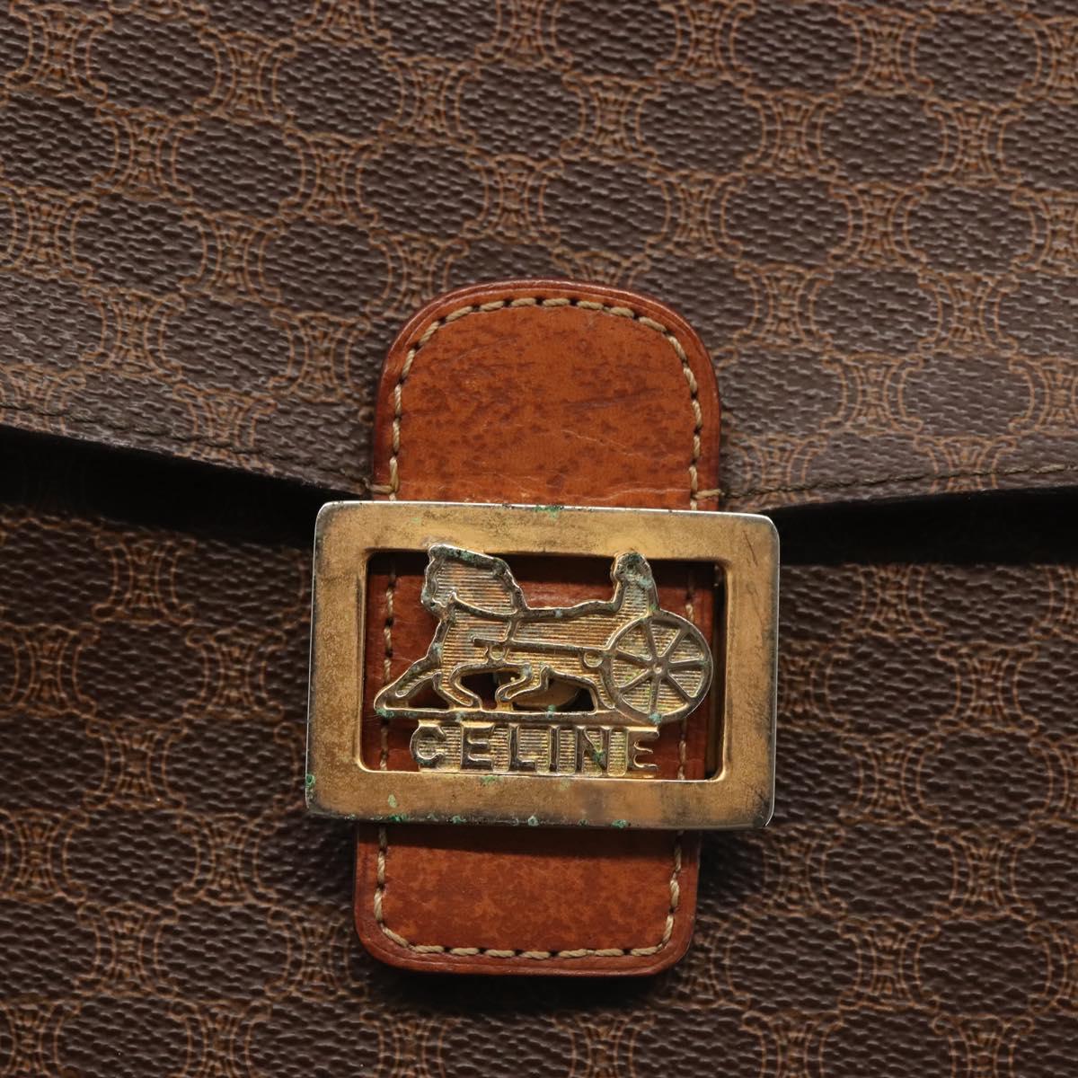 CELINE Macadam Canvas Shoulder Bag PVC Leather Brown Gold Auth bs29090