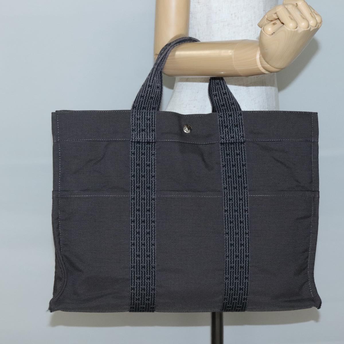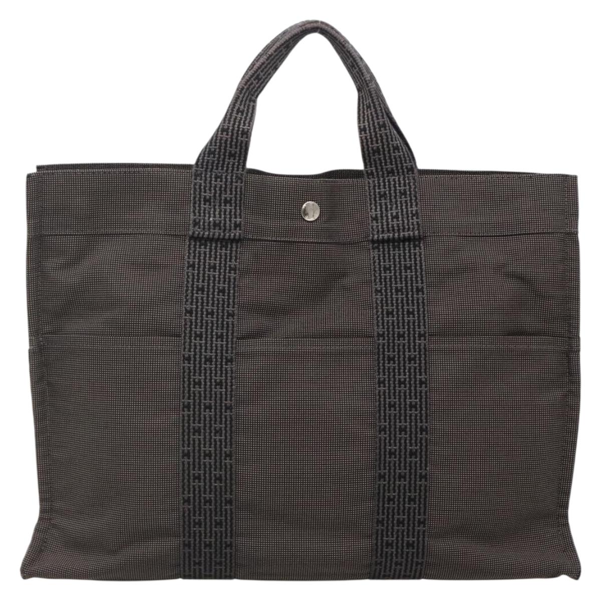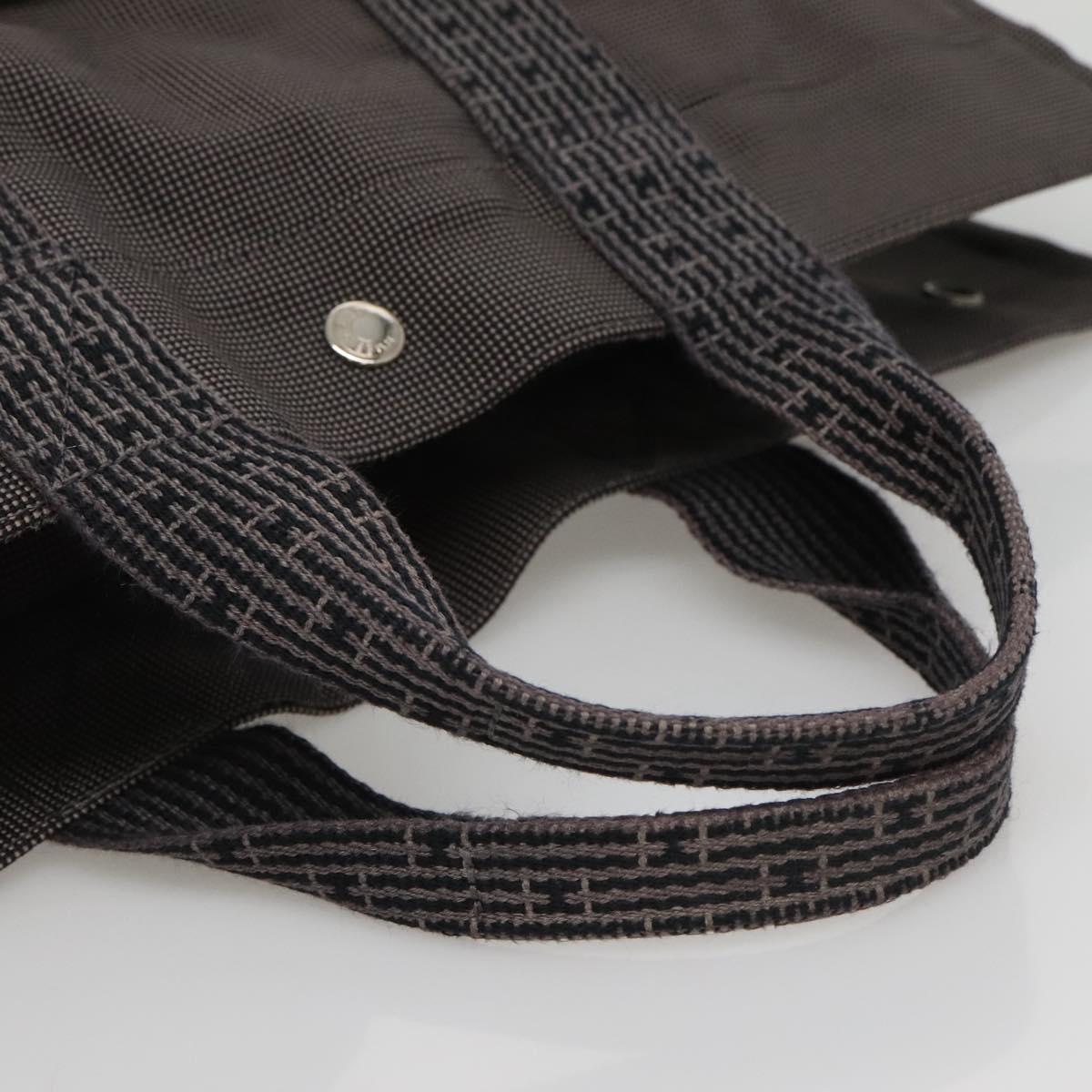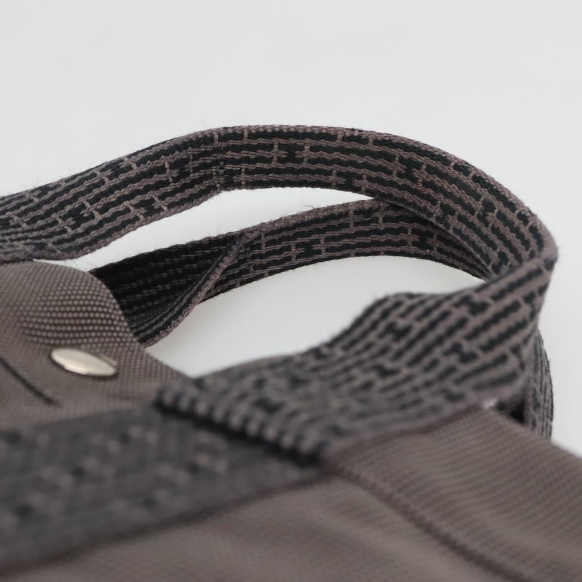 HERMES Her Line MM Hand Bag Canvas Gray Silver Auth 141513