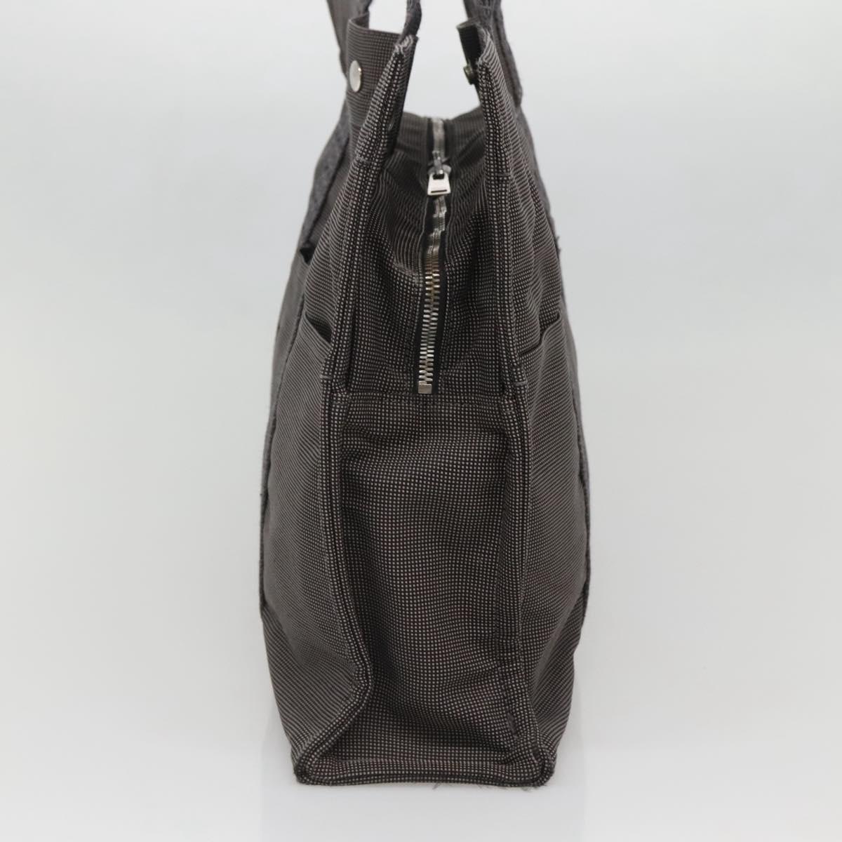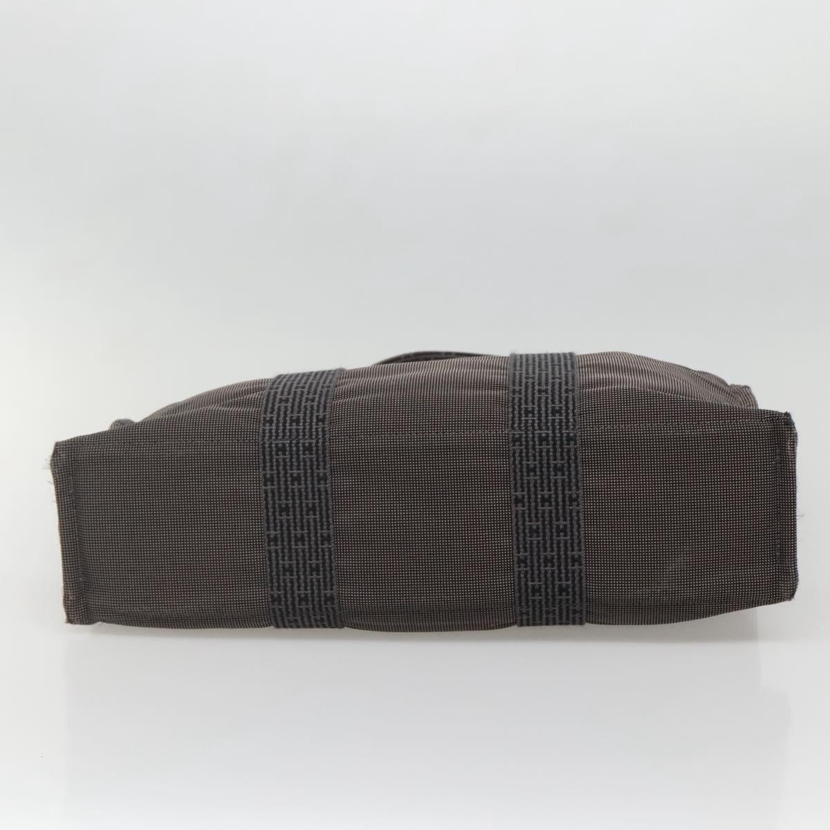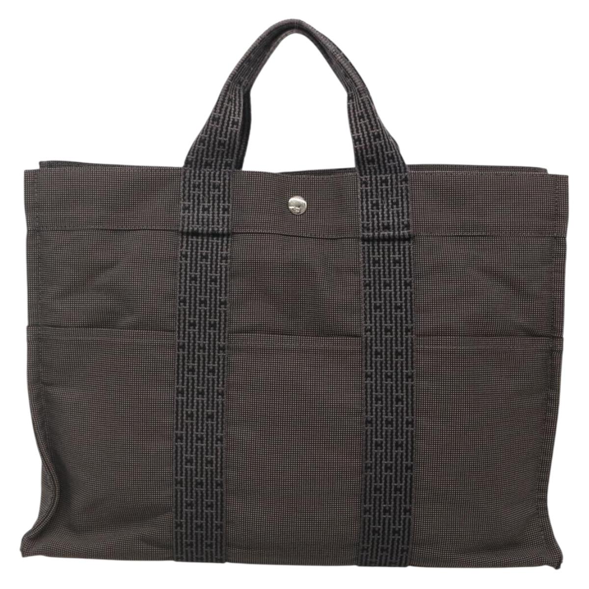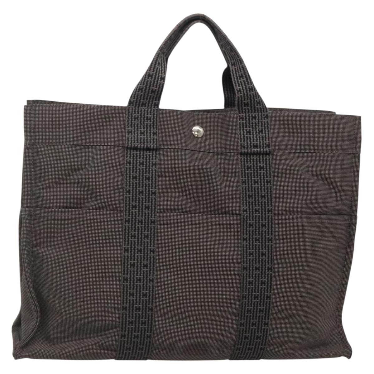 HERMES Her Line MM Hand Bag Canvas Gray Silver Auth 141513
