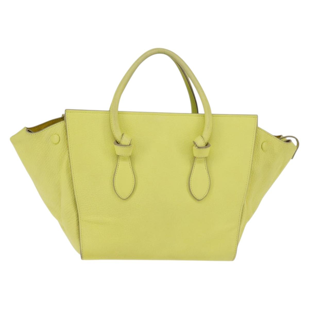 CELINE Thai Mini Hand Bag Leather Yellow Gold Auth BA5808