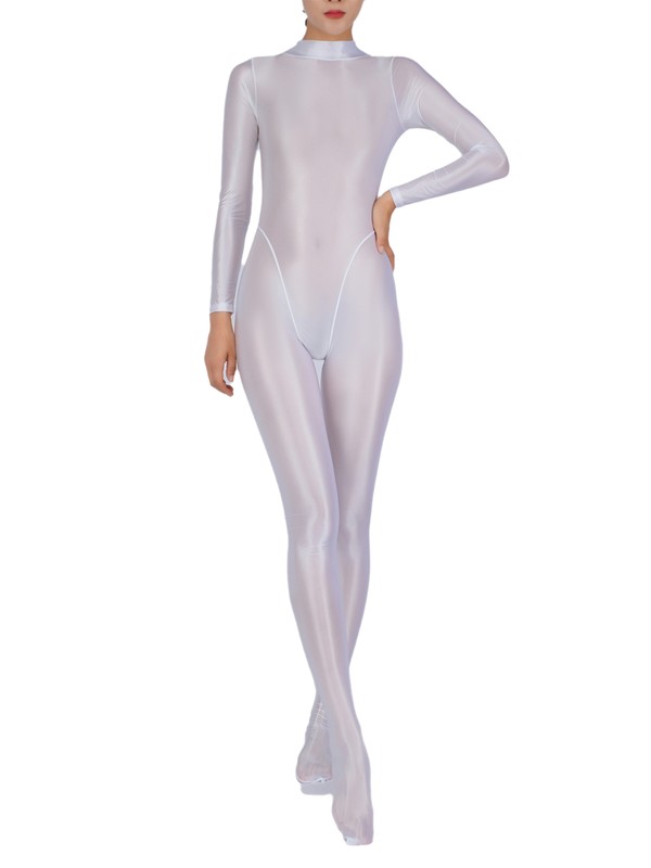 Womens Romper Glossy Bodysuit Thin Jumpsuit Tights See Through Long Sleeve Sexy