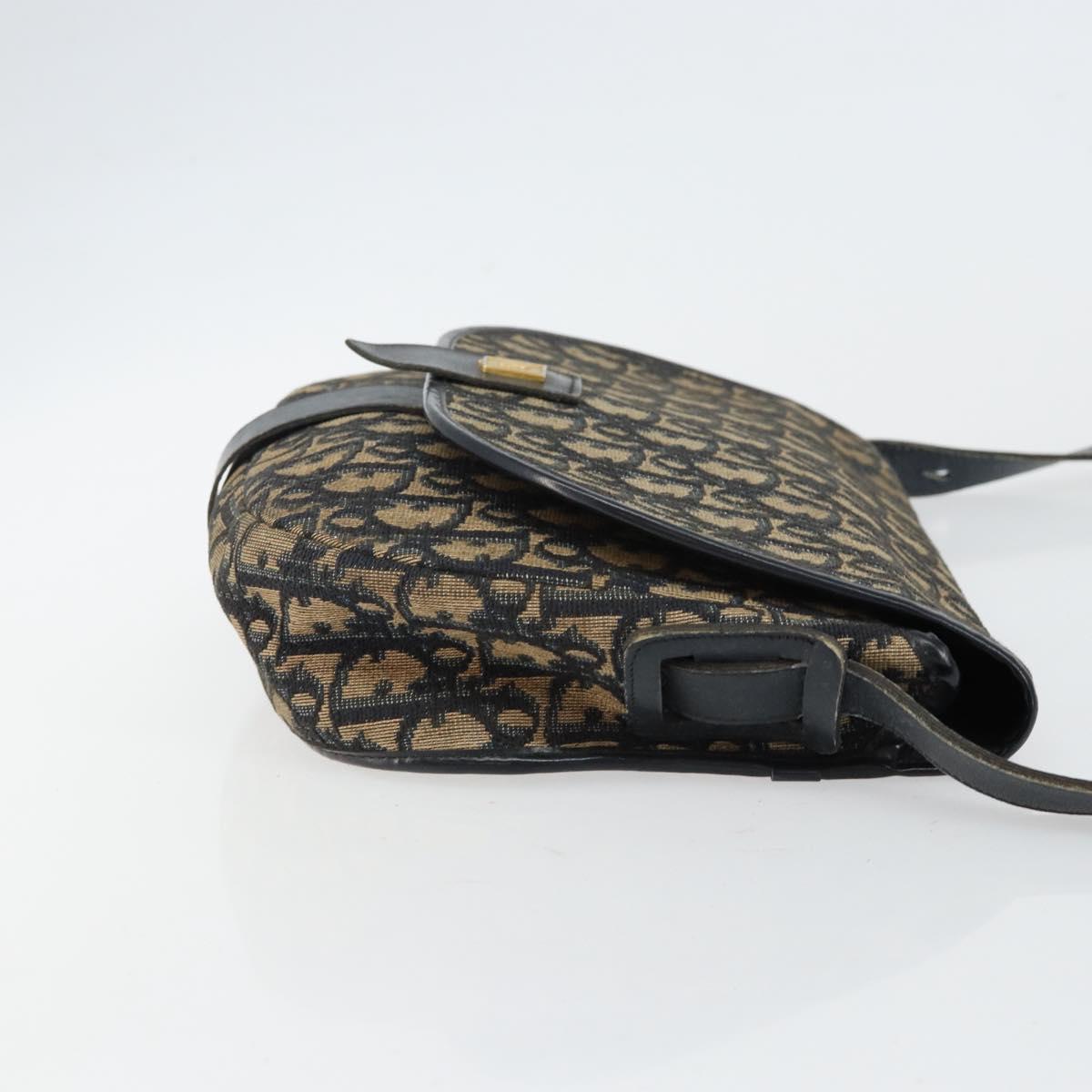 Christian Dior Trotter Canvas Shoulder Bag Navy Gold Auth BA6283