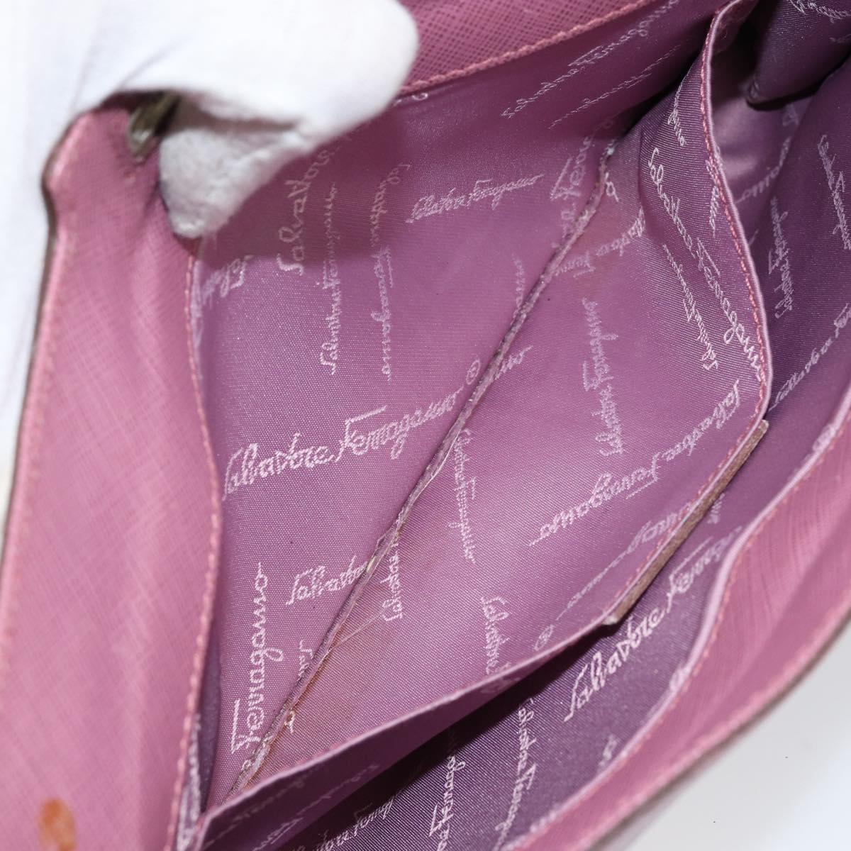 Salvatore Ferragamo Gancini Shoulder Pouch Leather Pink Silver Auth bs29685