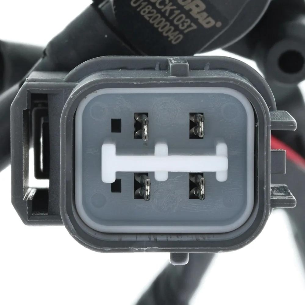 NOTES: (1) CONNECTOR QUANTITY; (2) MOUNTING HOLE QUANTITY; (4) TERMINAL QUANTITY; FEMALE CONNECTOR GENDER; RECTANGULAR CONNECTOR SHAPE; MALE TERMINAL GENDER; BLADE TERMINAL TYPE