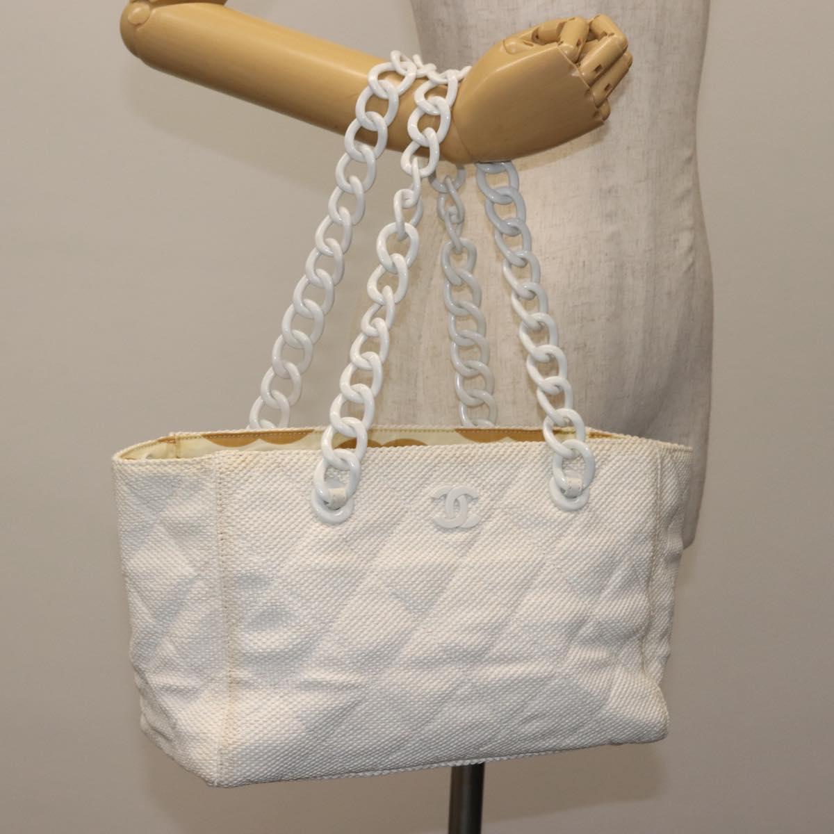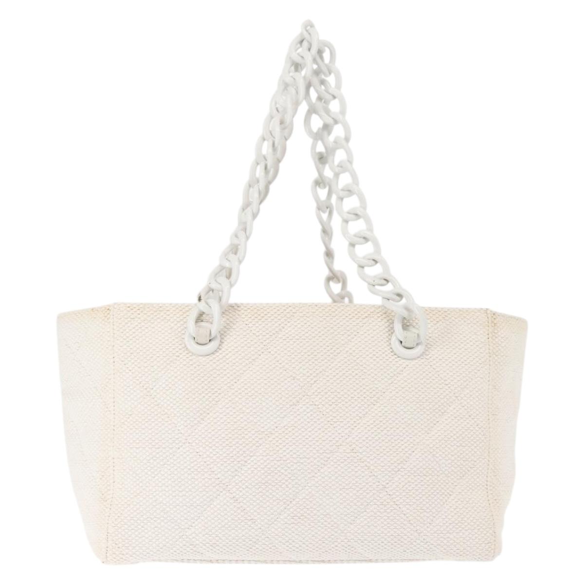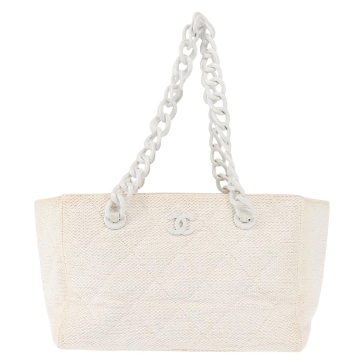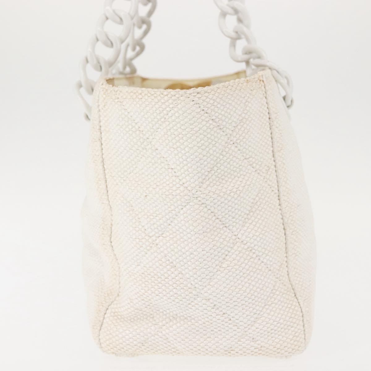 CHANEL Plastic Chain Tote Bag Straw Gold White CC Auth BA6435