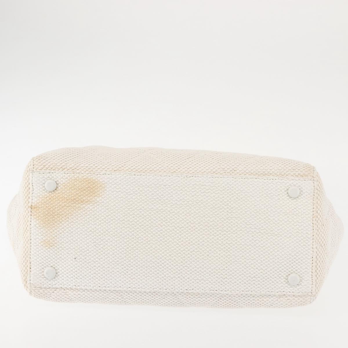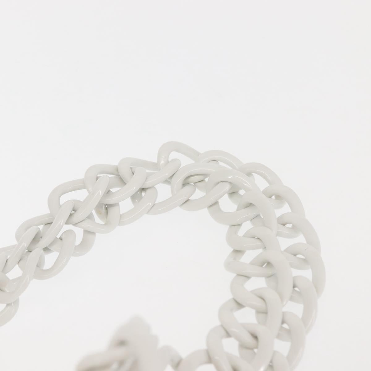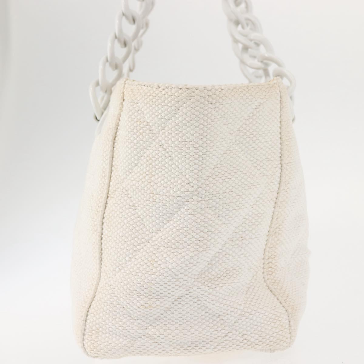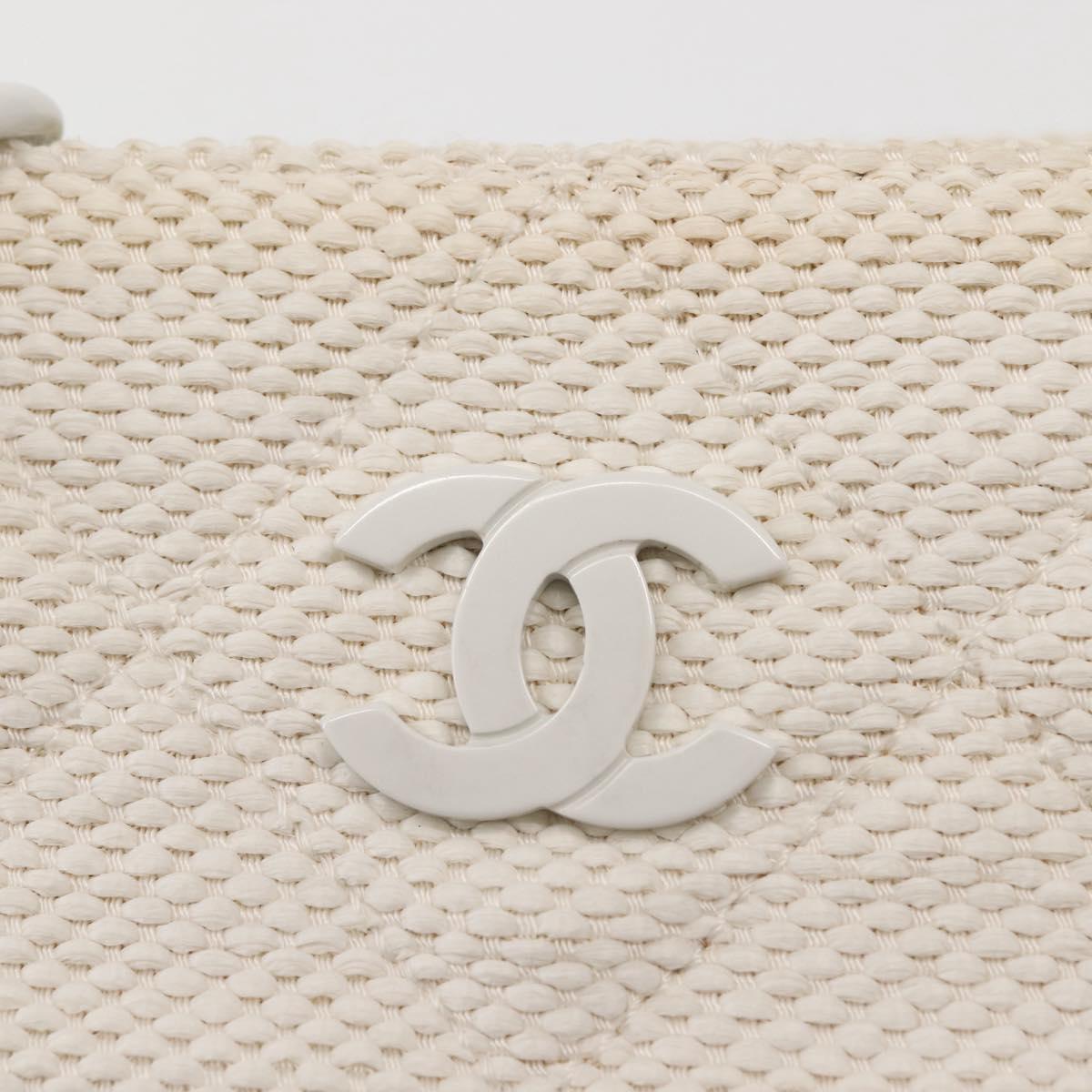 CHANEL Plastic Chain Tote Bag Straw Gold White CC Auth BA6435
