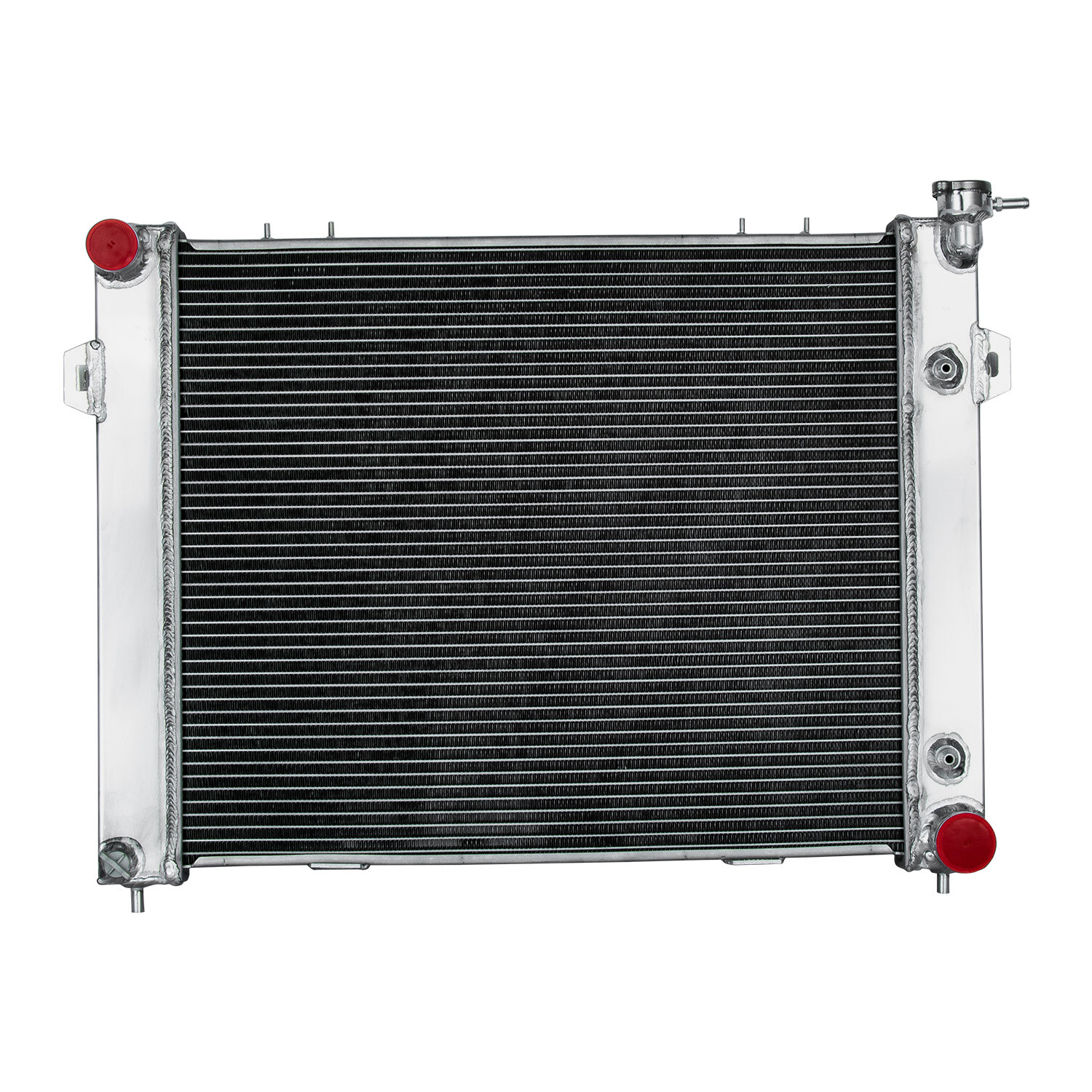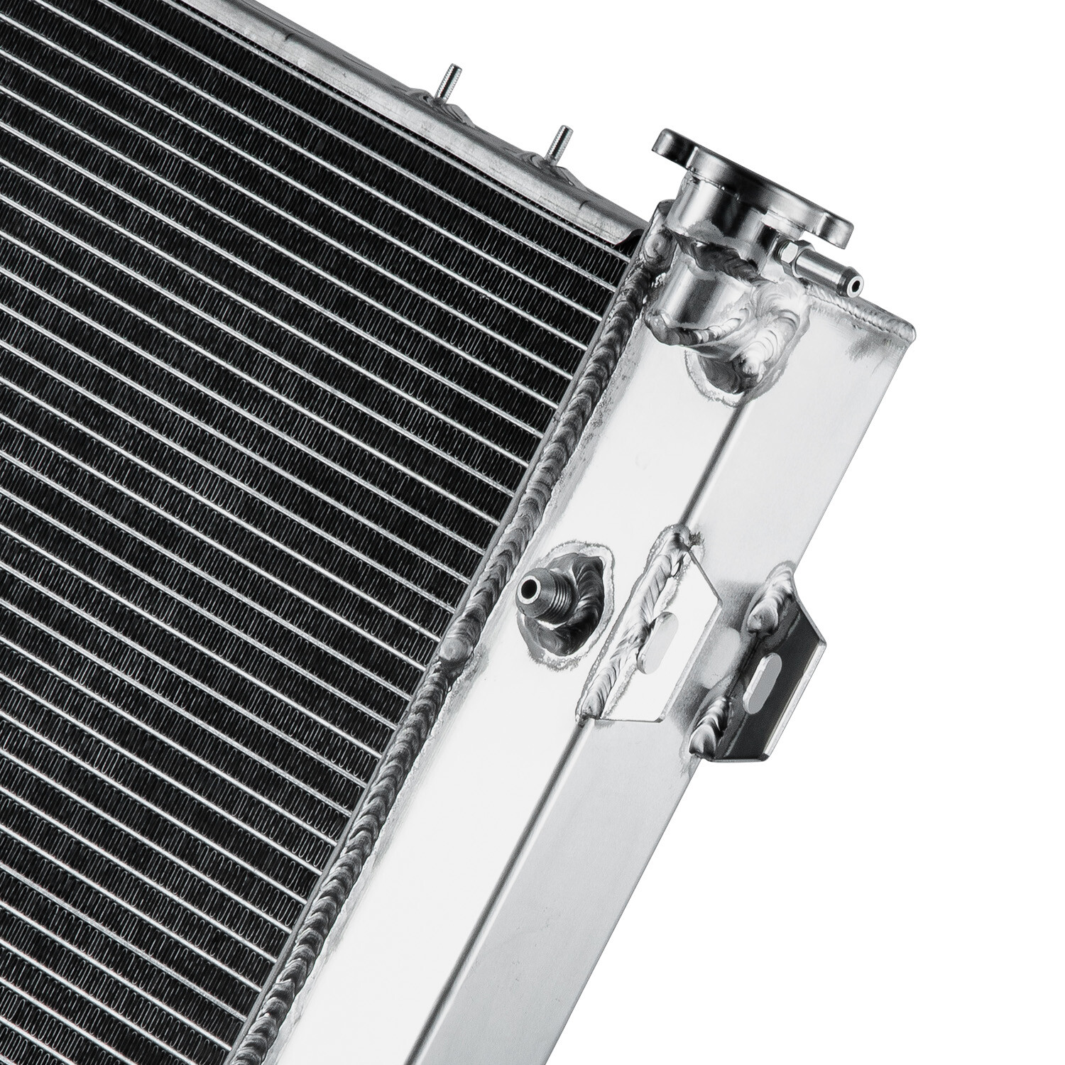 Vehicle Fitment: 1993 JEEP GRAND CHEROKEE 5.2L, 318ci, V8 (GAS) 1993 JEEP GRAND CHEROKEE LAREDO 5.2L, 318ci, V8 (GAS) 1993 JEEP GRAND CHEROKEE LIMITED 5.2L, 318ci, V8 (GAS) 1994 JEEP GRAND CHEROKEE LAREDO 5.2L, 318ci, V8 (GAS) 1994 JEEP GRAND CHEROKEE LIMITED 5.2L, 318ci, V8 (GAS) 1994 JEEP GRAND CHEROKEE SE 5.2L, 318ci, V8 (GAS) 1995 JEEP GRAND CHEROKEE LAREDO 5.2L, 318ci, V8 (GAS) 1995 JEEP GRAND CHEROKEE LIMITED 5.2L, 318ci, V8 (GAS) 1995 JEEP GRAND CHEROKEE ORVIS 5.2L, 318ci, V8 (GAS) 1995 JEEP GRAND CHEROKEE SE 5.2L, 318ci, V8 (GAS) 1996 JEEP GRAND CHEROKEE LAREDO 5.2L, 318ci, V8 (GAS) 1996 JEEP GRAND CHEROKEE LIMITED 5.2L, 318ci, V8 (GAS) 1997 JEEP GRAND CHEROKEE LAREDO 5.2L, 318ci, V8 (GAS) 1997 JEEP GRAND CHEROKEE LIMITED 5.2L, 318ci, V8 (GAS) 1997 JEEP GRAND CHEROKEE ORVIS 5.2L, 318ci, V8 (GAS) 1997 JEEP GRAND CHEROKEE TSI 5.2L, 318ci, V8 (GAS) Radiator Configuration: 1-Row of tubes Core Racing Design Core Size: 22 1/4" Wide x 19 1/4" High Inlet Hose Connection: 1 1/2" Driver Side Outlet Hose Connection: 1 3/4" Passenger Side Transmission Oil Cooler: YES Please Check the Size Before You Buy! Description: The core of the radiator is welded in vacuum brazing furnace, no epoxy.The Radiator are 100% welded by TIG.Stronger & Higher Capacity for Coolant than OEM units,Made of High Quality Full Aluminum Construction. This aluminum radiator is designed to provide maximum cooling efficiency to prevent premature engine failure. Its light-weight, and high-heat transferring aluminum features a tube and fin design that, dramatically increases surface area that enables the heat to dissipate more efficiently. This Aluminum Radiator is at least 35% to 45% more efficient than stock ones. Most importantly, it has a much higher capacity for coolant than stock ones, which means that your cooling system will be more efficient and will be more resistant to temperature surges in racing applications. 1 Higher density core: cooling rows are spaced 3/8" apart.giving you 25% more rows within the core than other aluminum radiators. 2 14-16 cooling fins per inch,giving you approximately 1500 more cooling fins than other aluminum radiators,throws off much more heat.