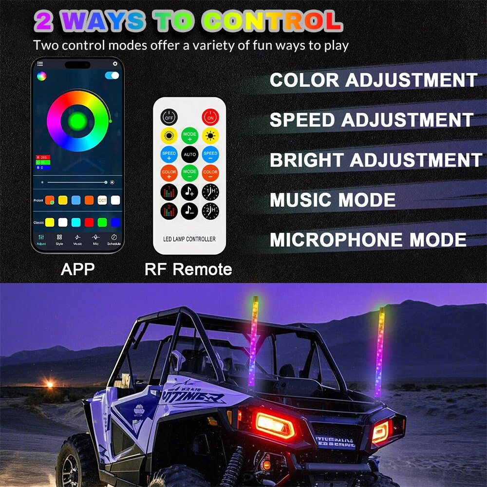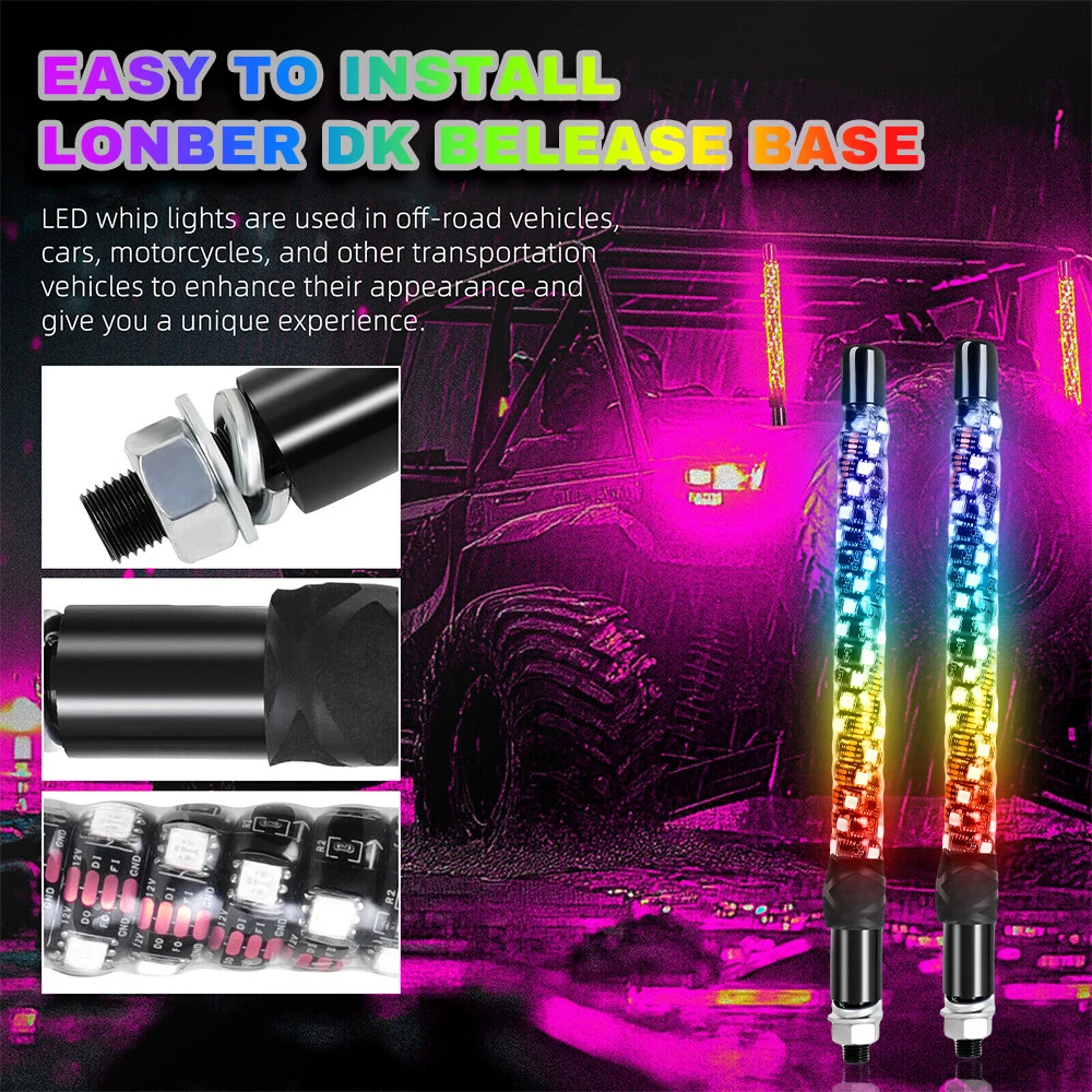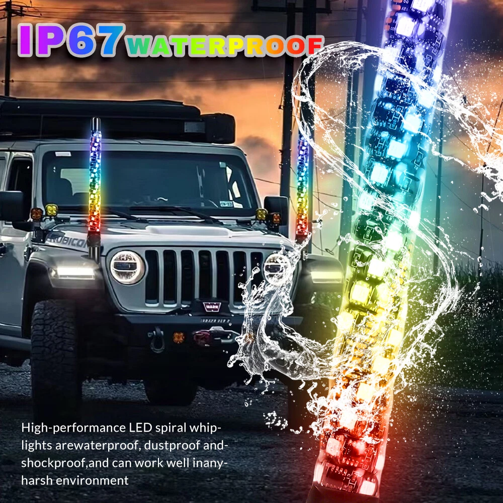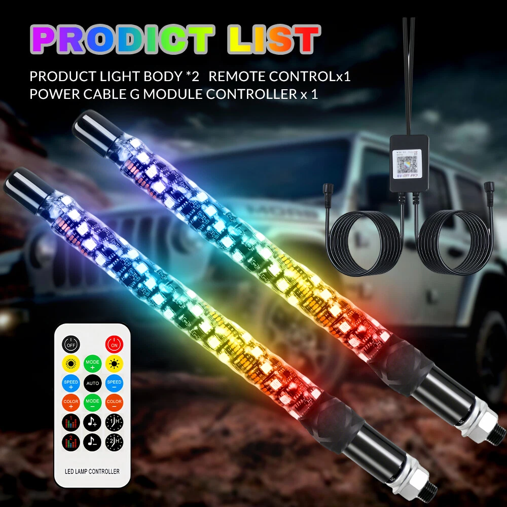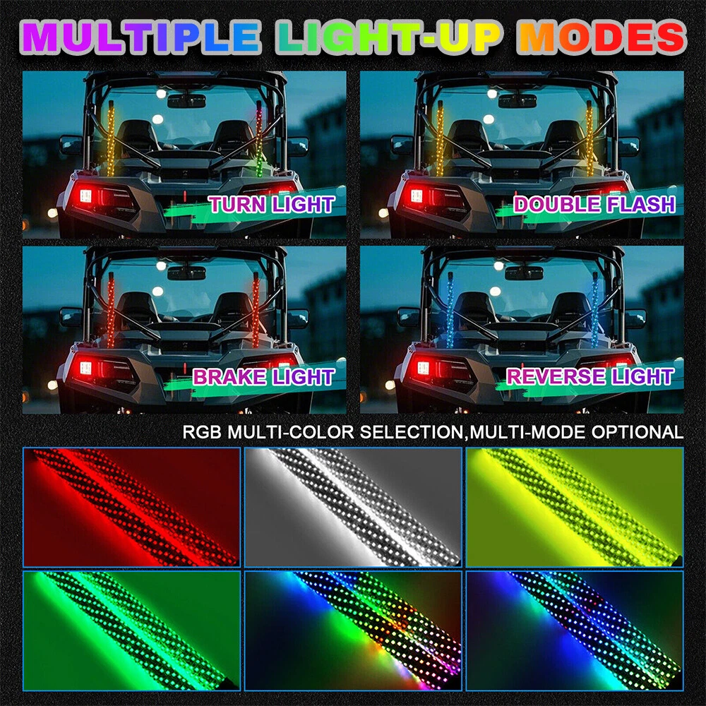 Safety & Durability - These LED lighted whips are covered by EVA transparent heat shrink tube and high-toughness silicone , and protect the LED chips from water and dust. It features the enhanced shockproof mechanism and an updated base, which improving products durability and protecting the from mechanical damage.