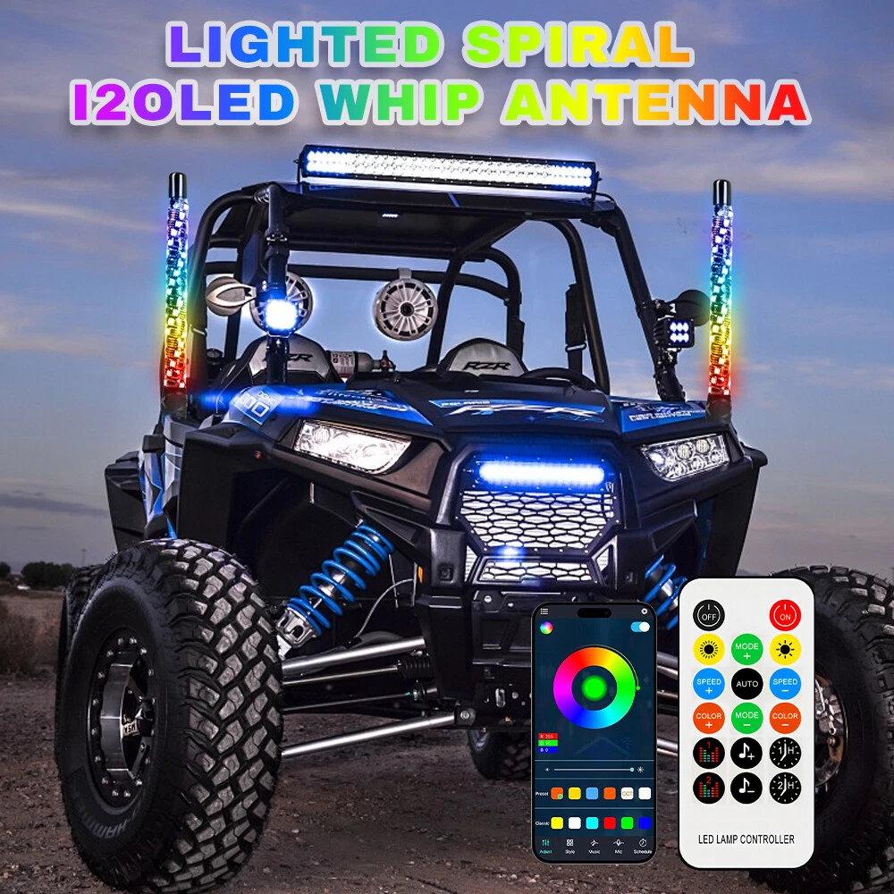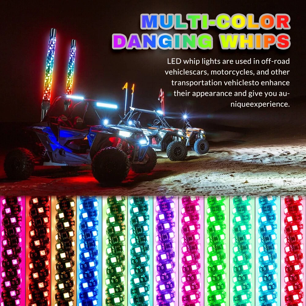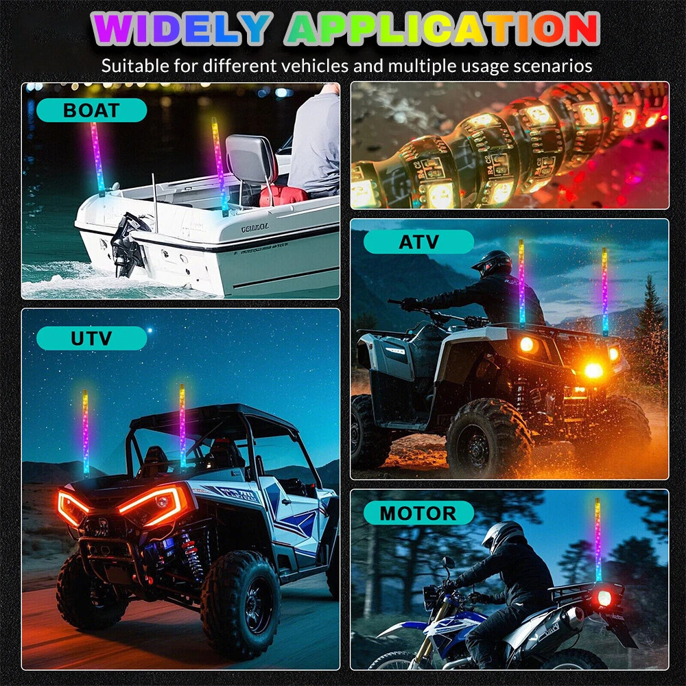 Applications - The universal LED whips perfect for Truck, ATV, UTV, RZR, Can-am, Dune Buggy, Sand Rail, 4 Wheeler, Golf Cart, Go Kart, Motorcycles, industrial equipment. The universal LED whips can be installed in any location you see fit so that no matter what make and model you drive, you’re sure to find the perfect position for it.