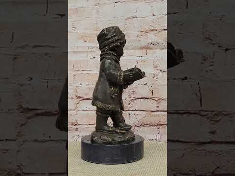 This heartwarming genuine bronze sculpture, signed by J. Patoue, captures a quiet and tender moment of childhood—a young boy dressed in winter clothing, deeply engrossed in reading a book. Wrapped in a cozy jacket and winter hat, he exudes a sense of warmth and innocence, embodying the stillness and curiosity that accompany a peaceful winter day. The sculpture beautifully reflects the joy of solitude and the timeless wonder found in reading.