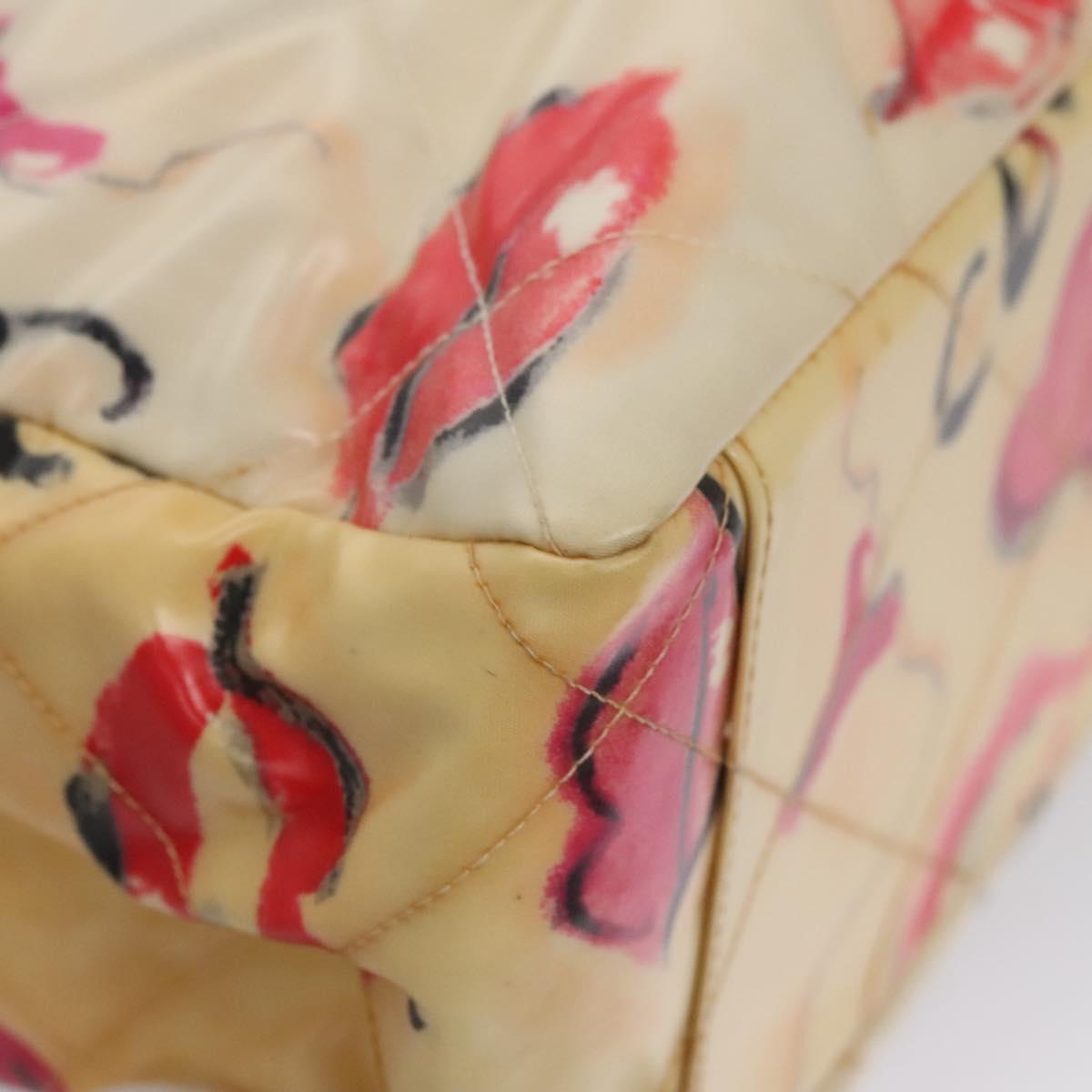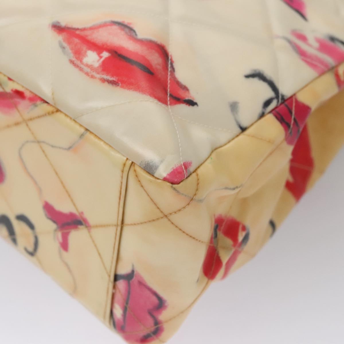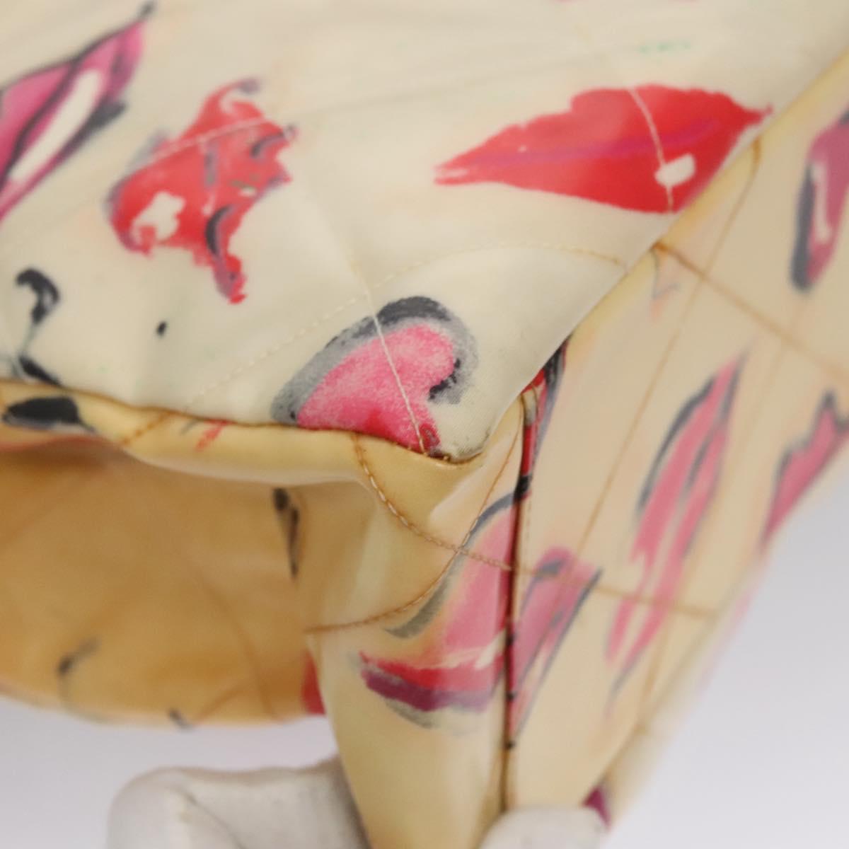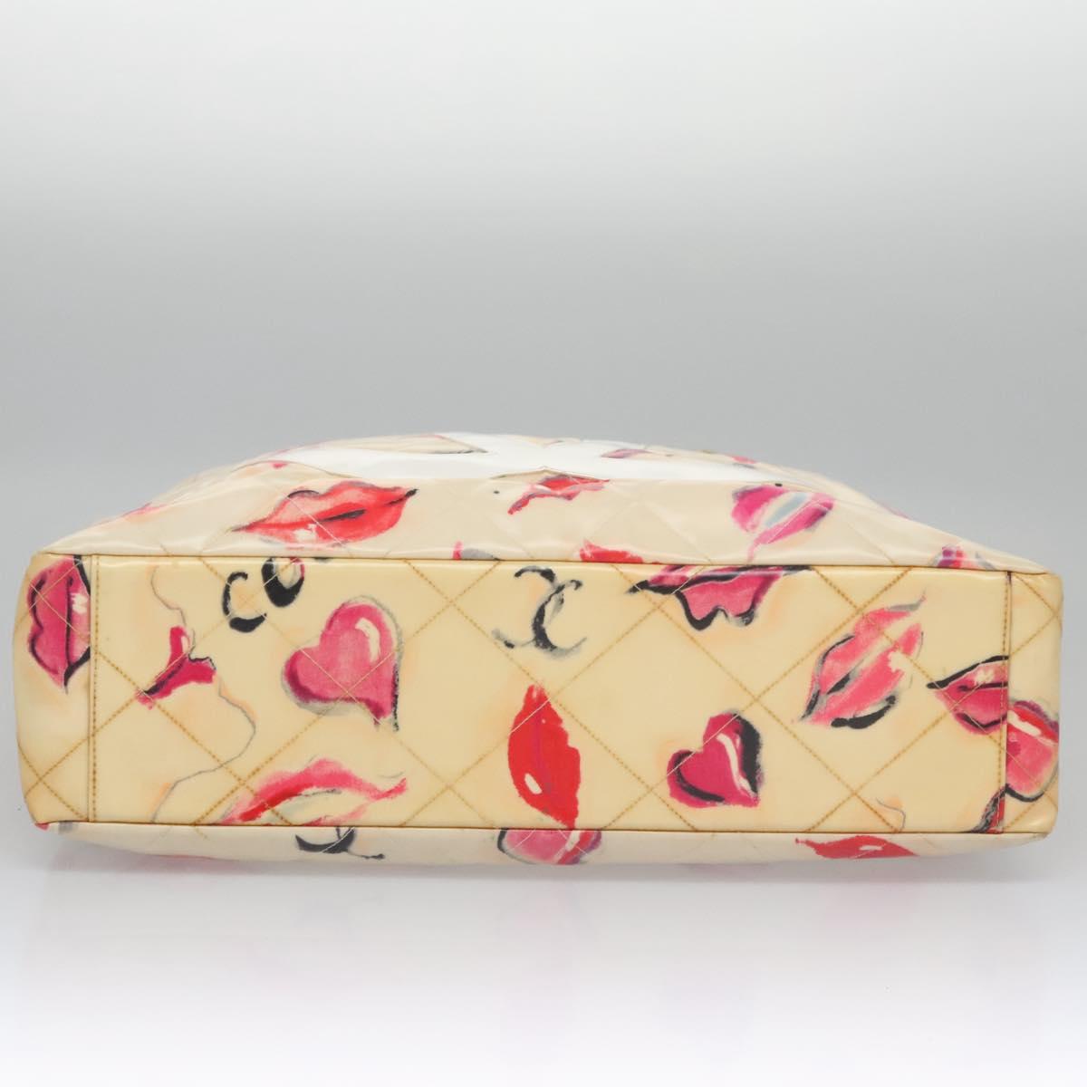 CHANEL Matelasse Chain Lip Tote Bag Enamel Beige CC Auth 115470A
