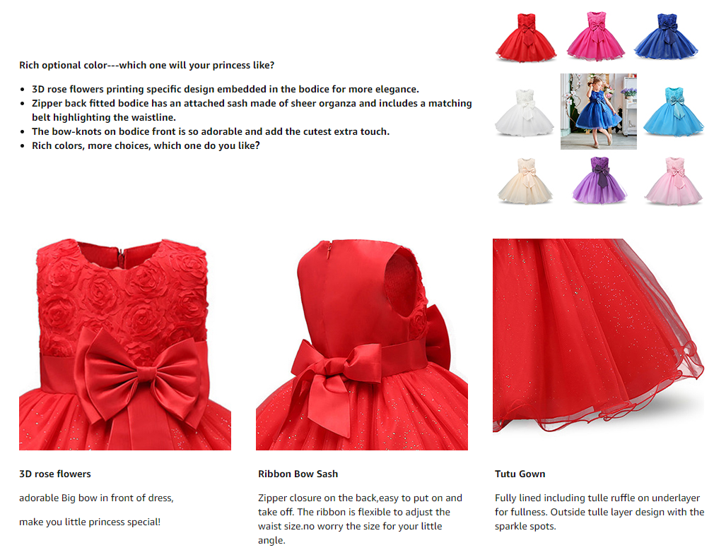 Suitable for any special occasions throughout the year be it in the winter or summer you can dress your little girl up for a wedding as a bridesmaid or a flower girl, this dress is also ideal so any other special ceremonies such as for her First Communion or Baptism. With these low cost high quality dresses you can dress your daughter up to make her feel as like a princess for Christmas or Halloween. Another great use for this sparkly dress is to dress her up for a birthday party to make her feel like a queen so she can be the belle of the ball. Fancy entering your child in a pageant, then why not dress her up in this beautiful shiny dress to make her look graceful and elegant.