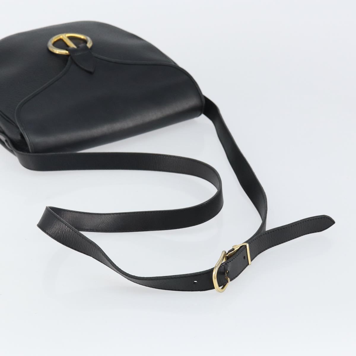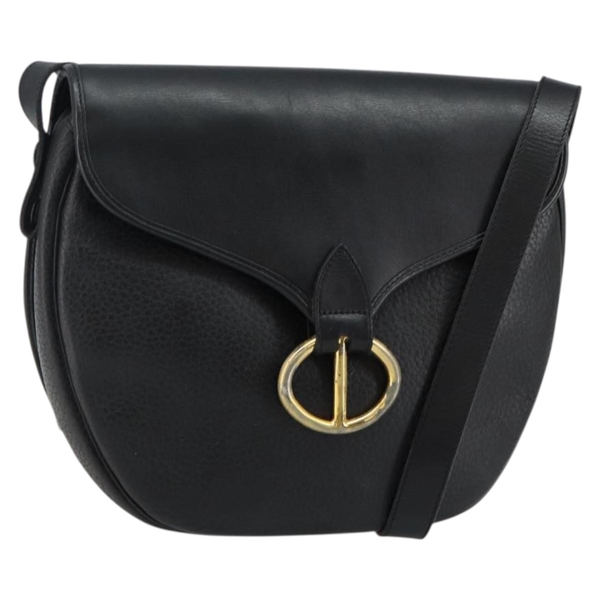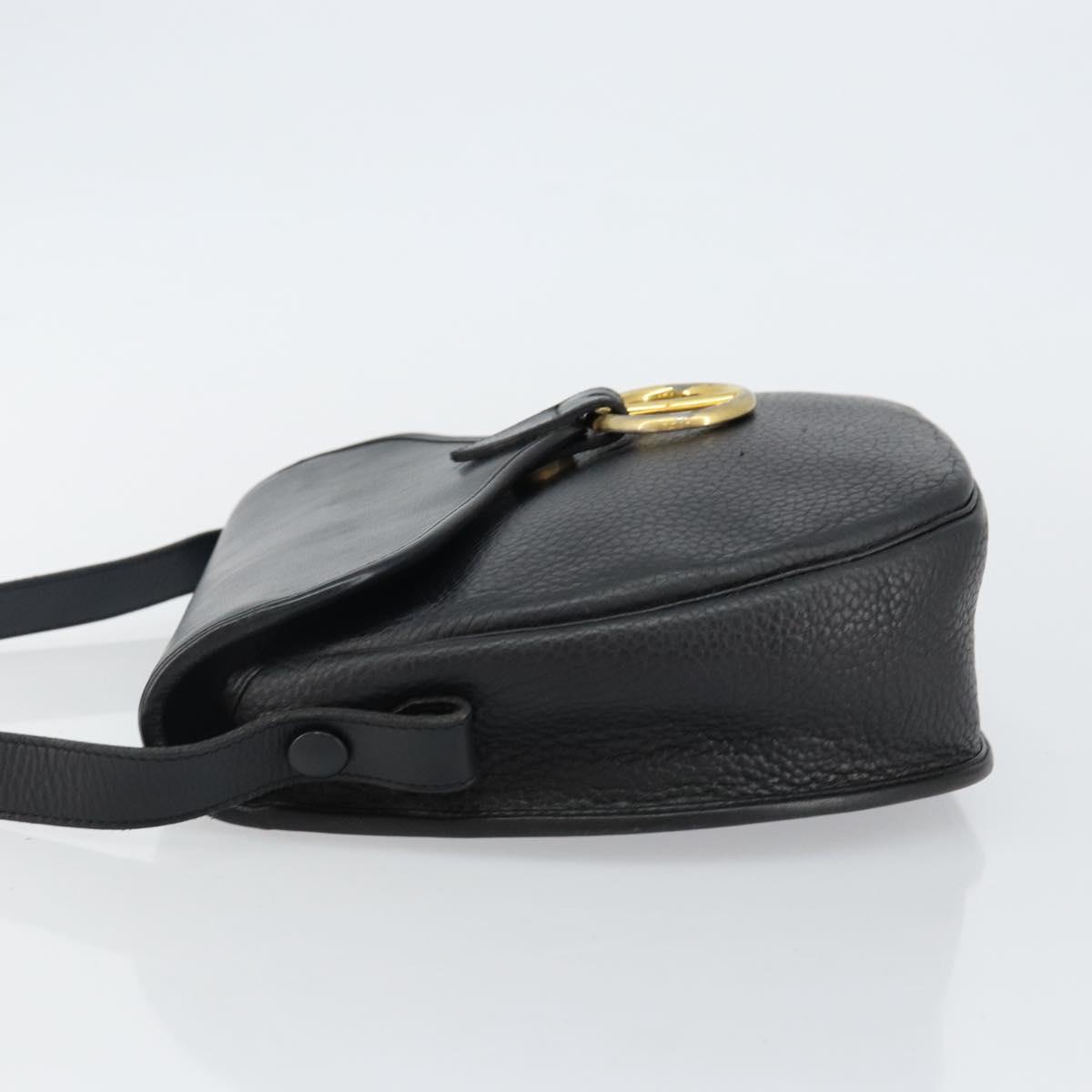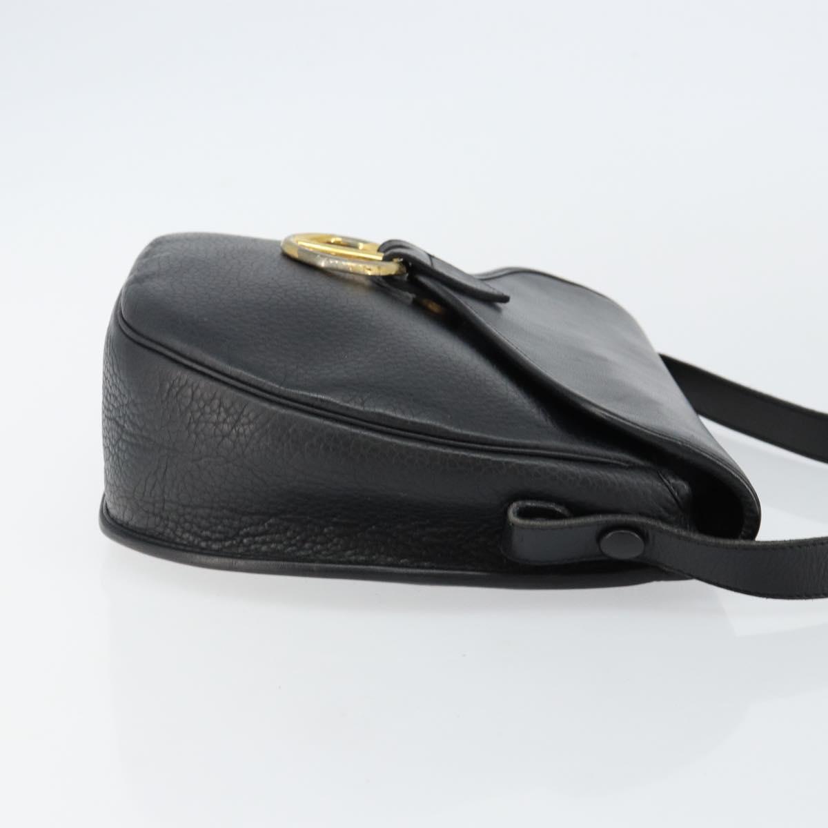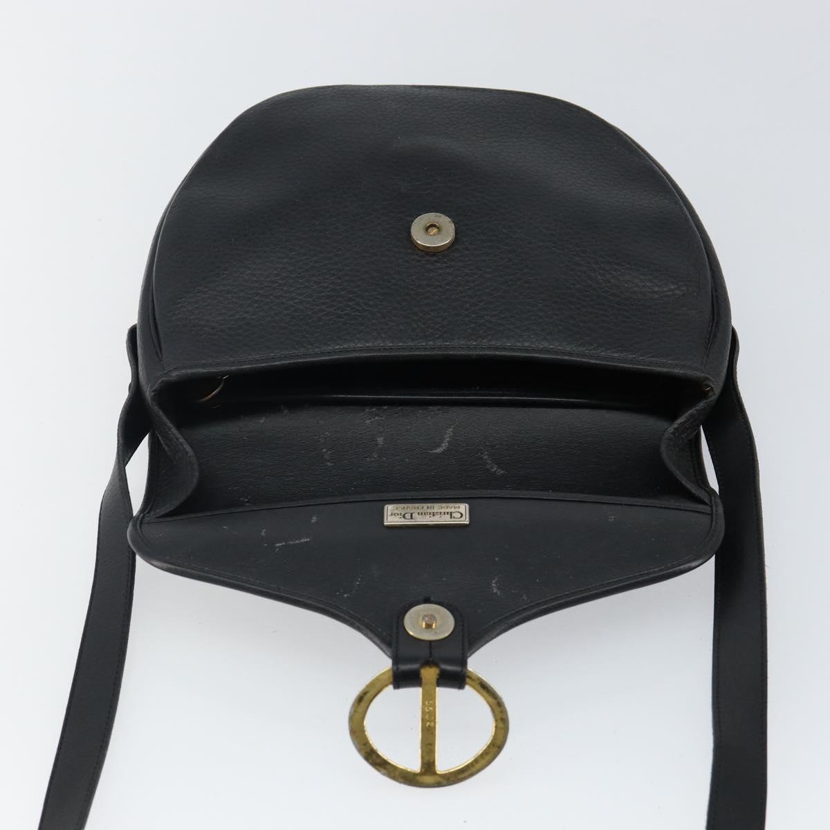Christian Dior Shoulder Bag Leather Black Gold Auth 143713