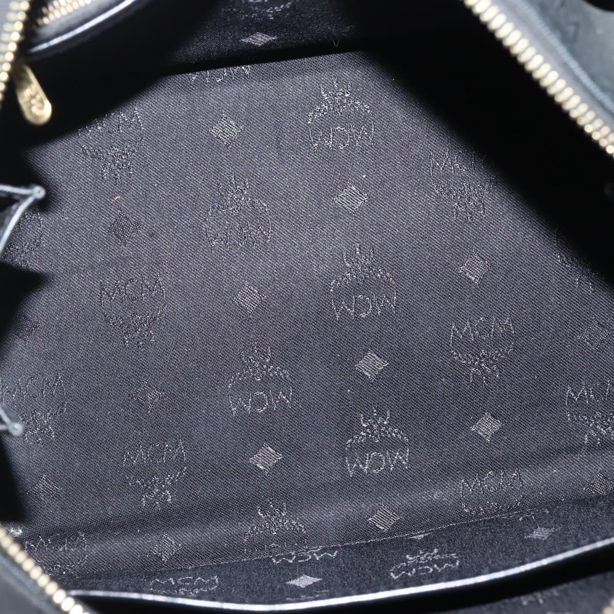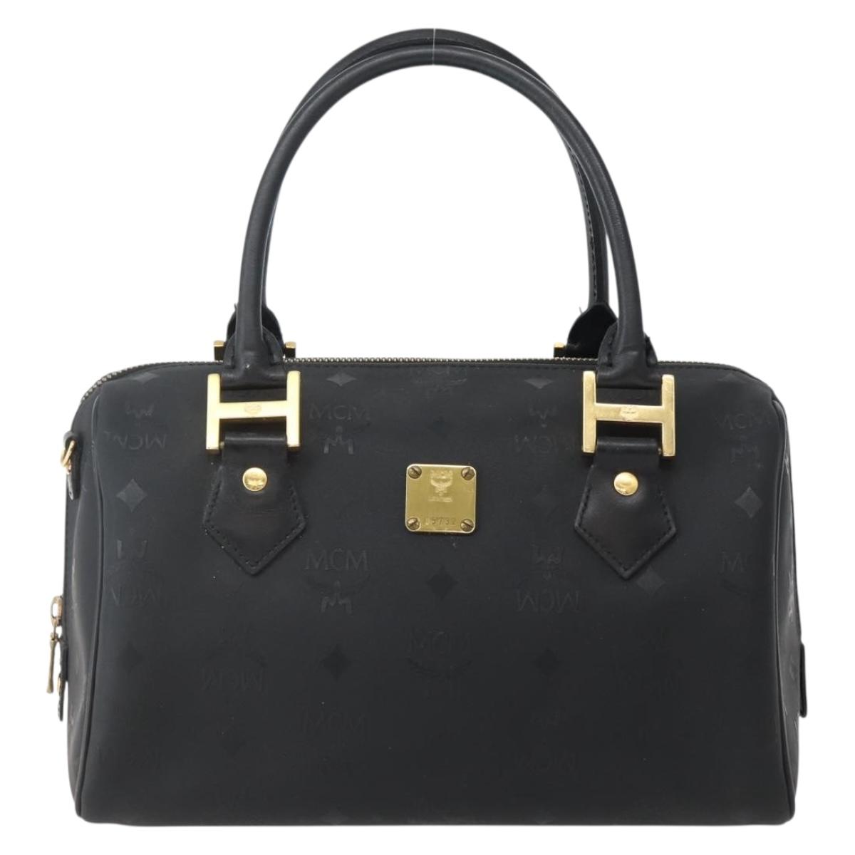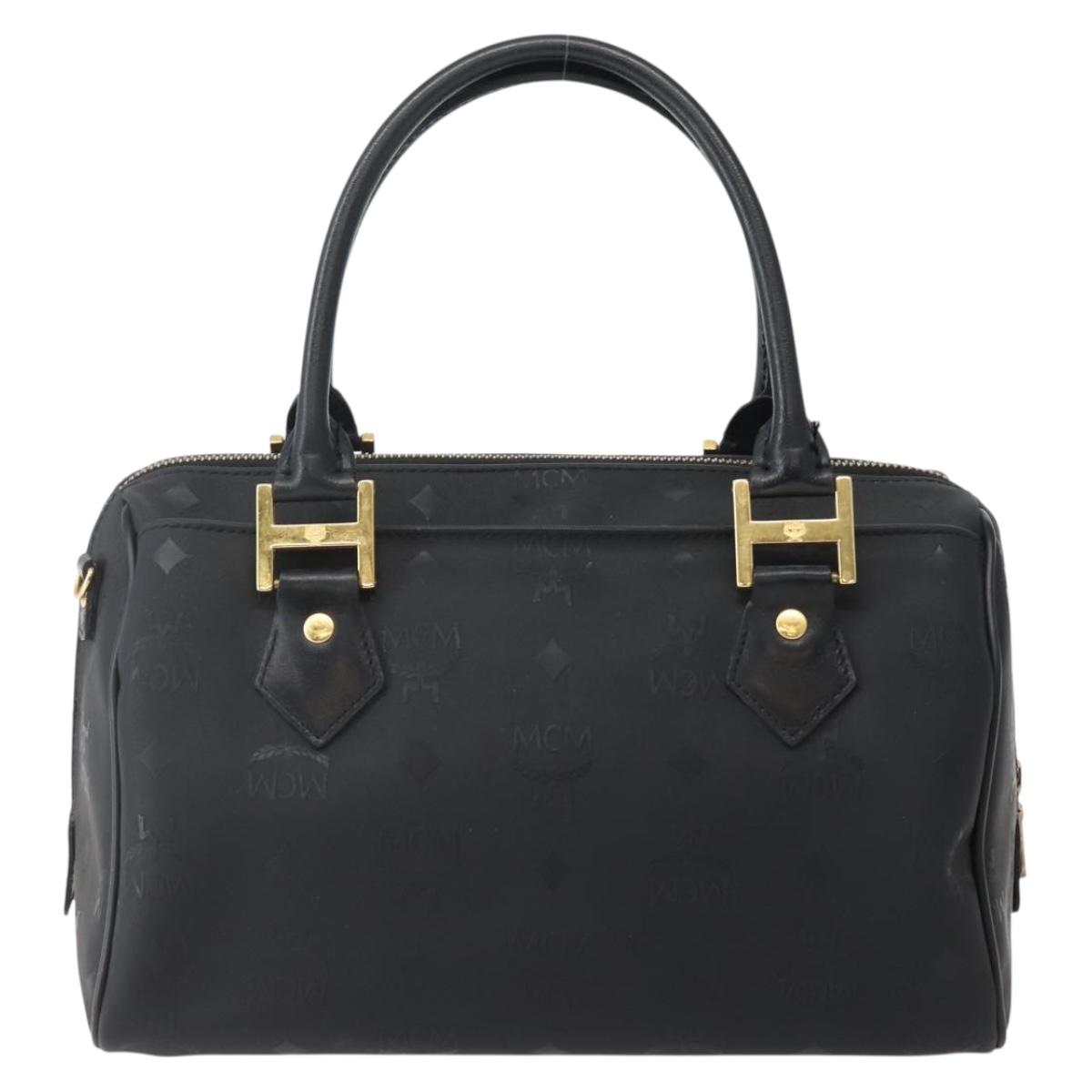 MCM Logogram Vicetos Boston Bag PVC Black Gold Auth am9026