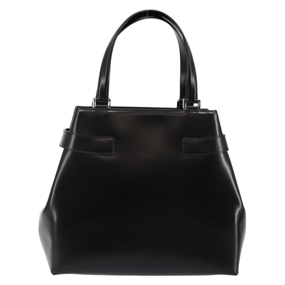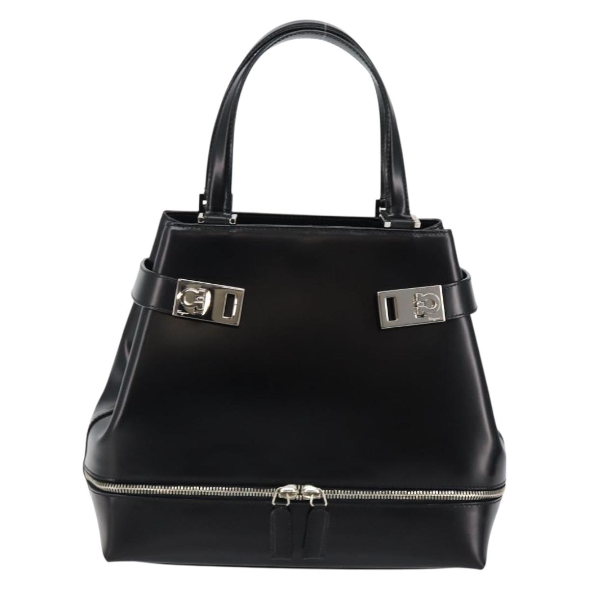 Salvatore Ferragamo Gancini Hand Bag Leather Black Silver Auth 143654V
