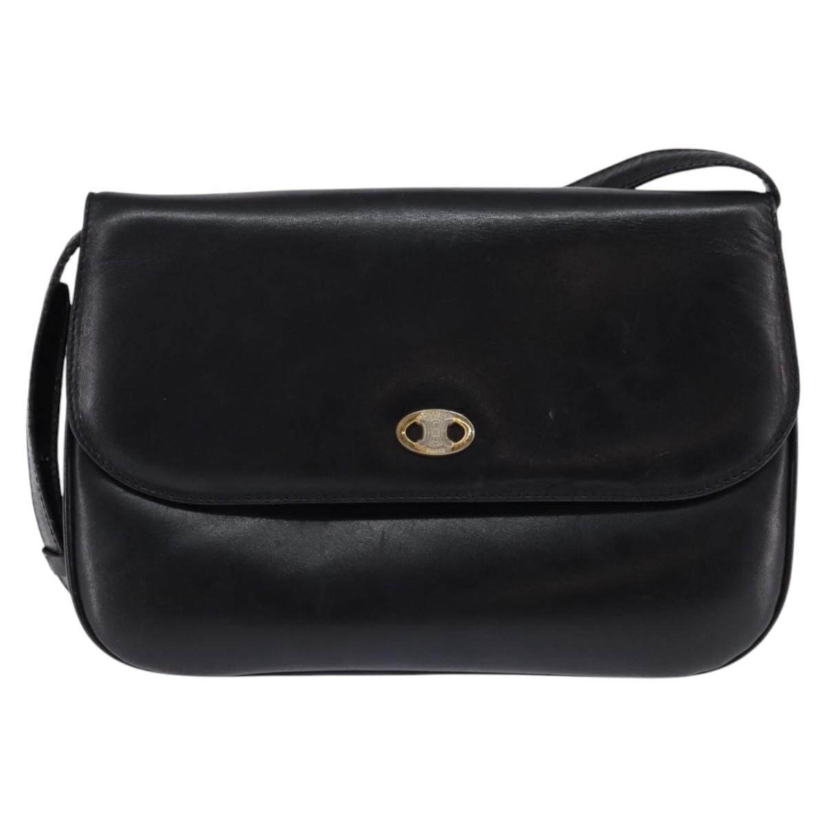 CELINE Shoulder Bag Leather Black Gold Auth BA6109