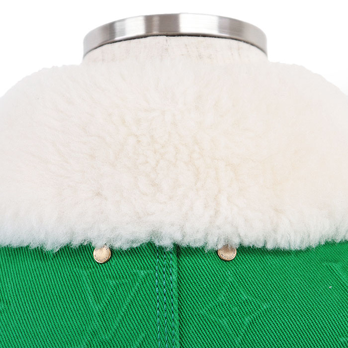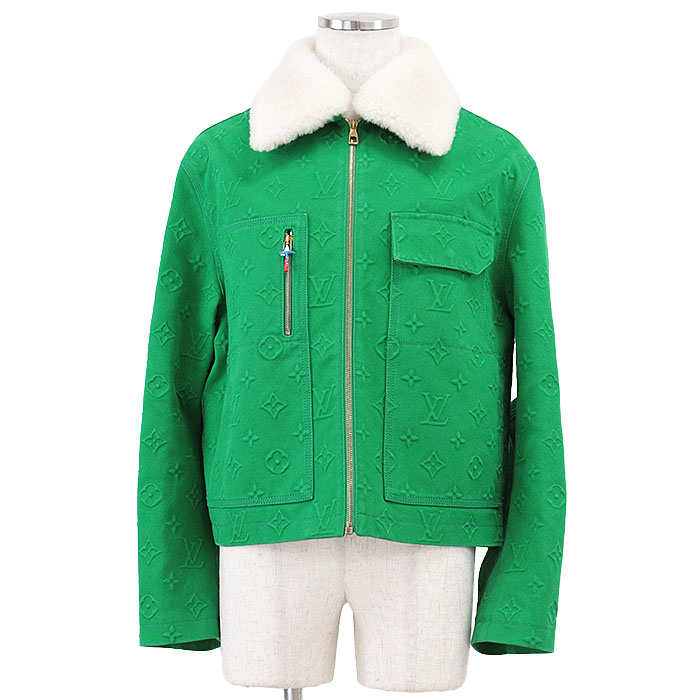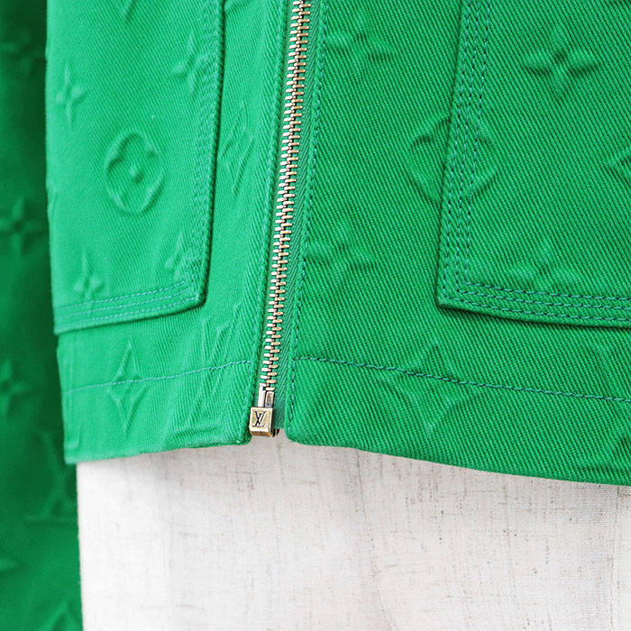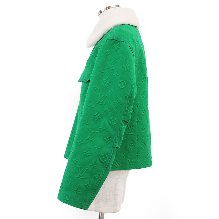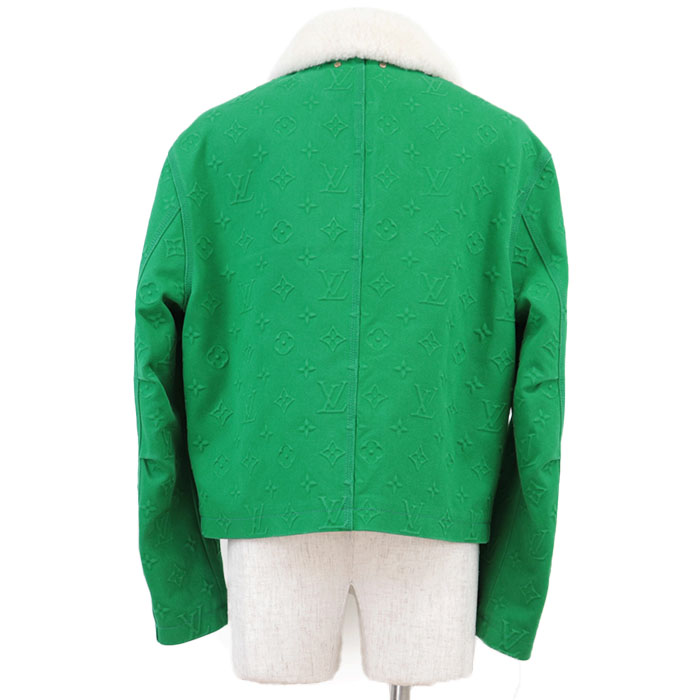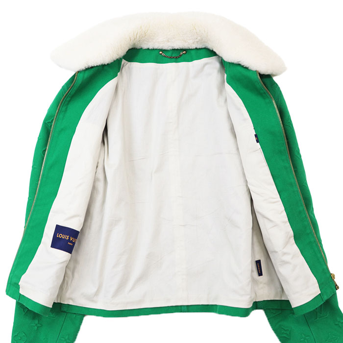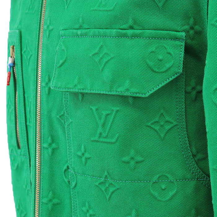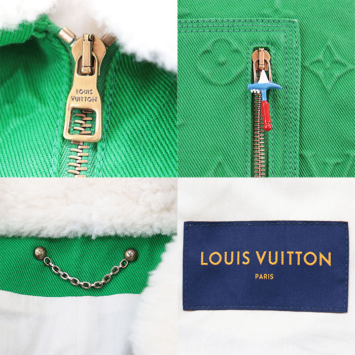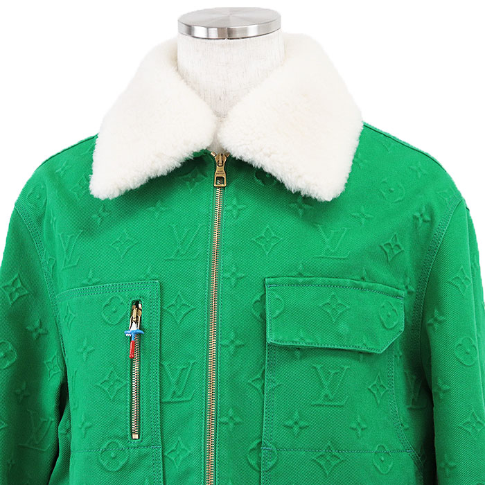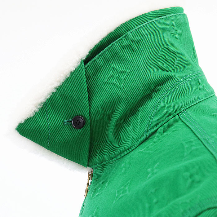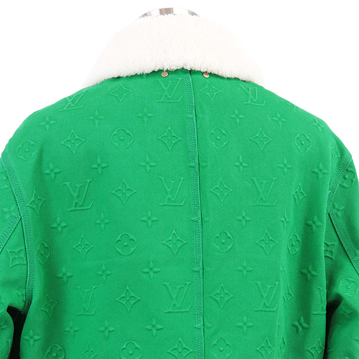 | Series | LOUIS VUITTON Men's Green Denim Jacket with Monogram LV Logo Embossed and Removable Shearling Collar, Cotton Blend, Size 48 |