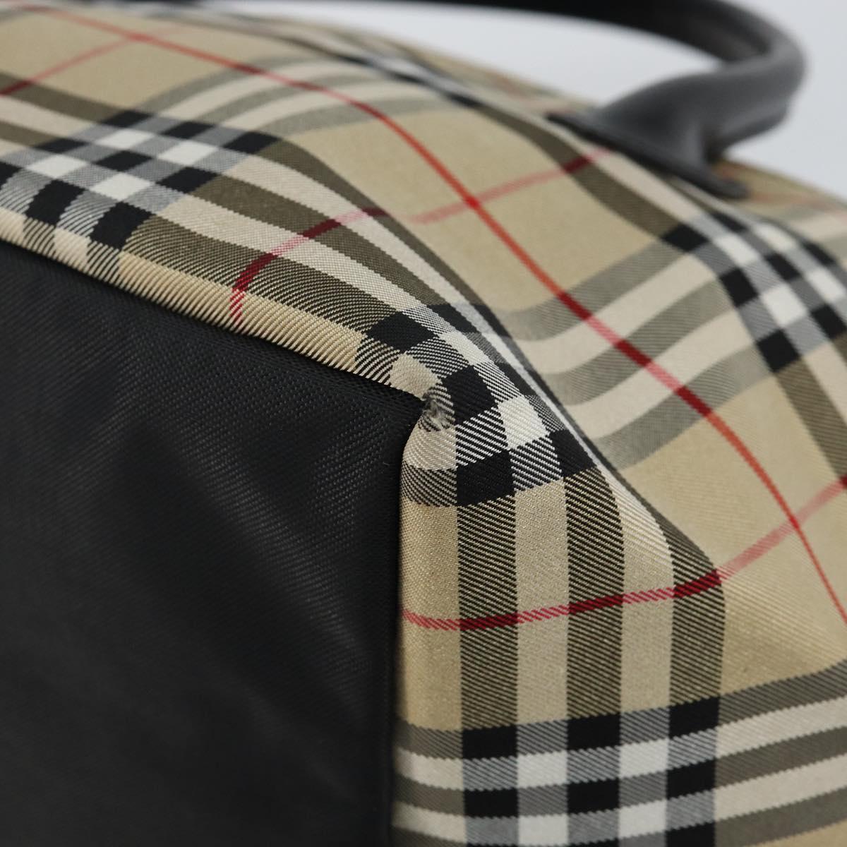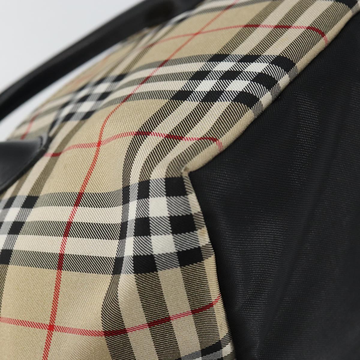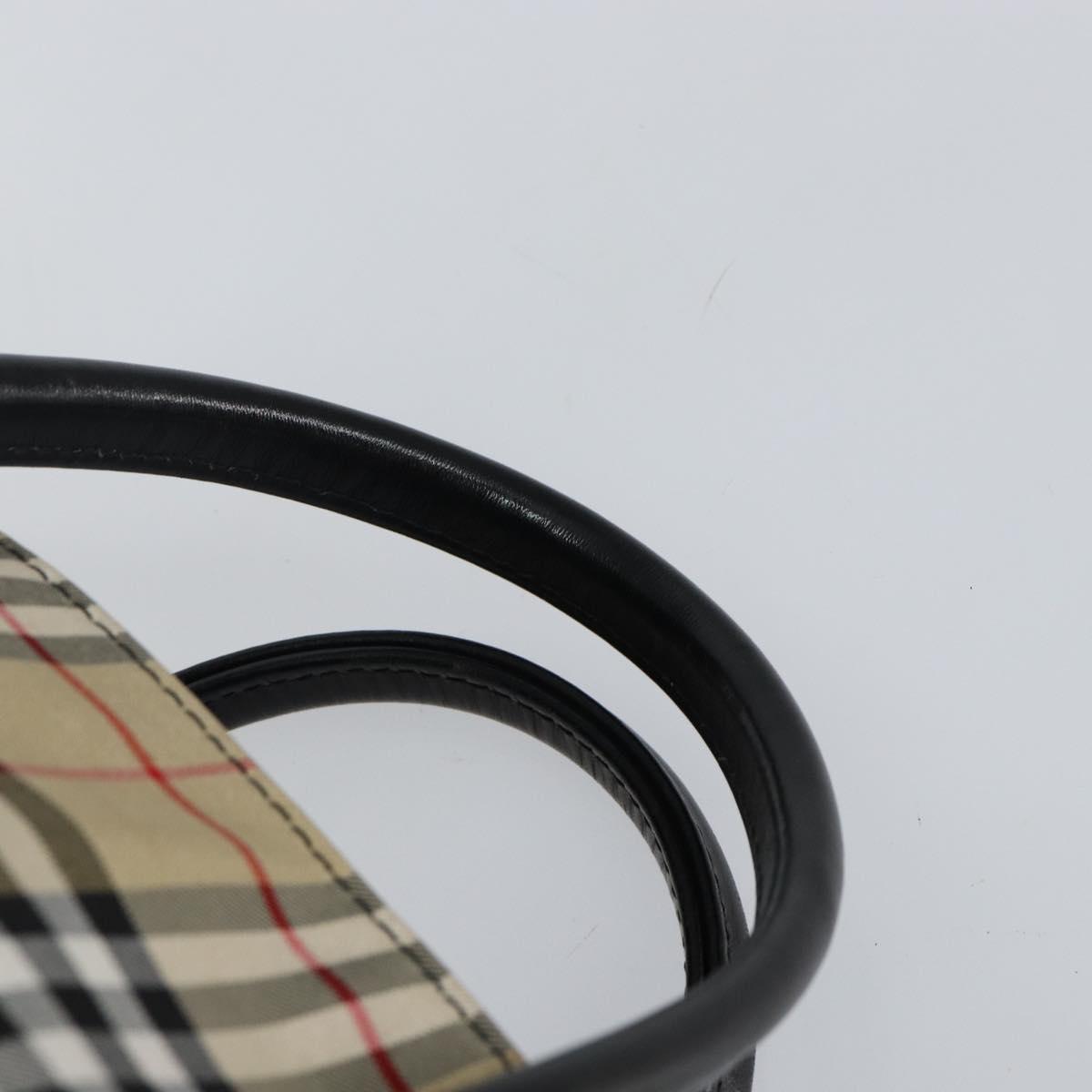 Burberrys Nova Check Blue Label Hand Bag Nylon Beige Silver Auth kk557