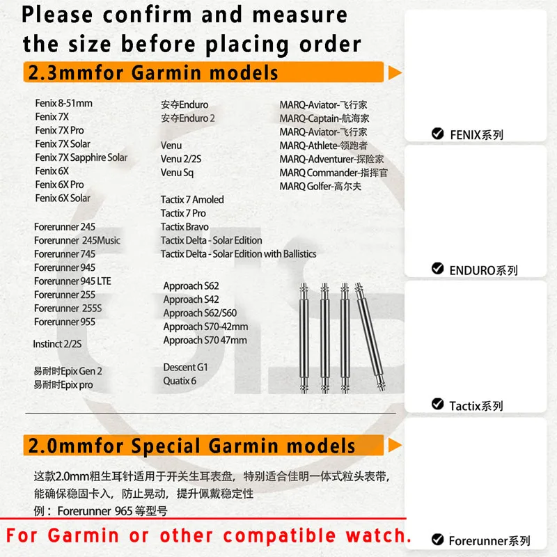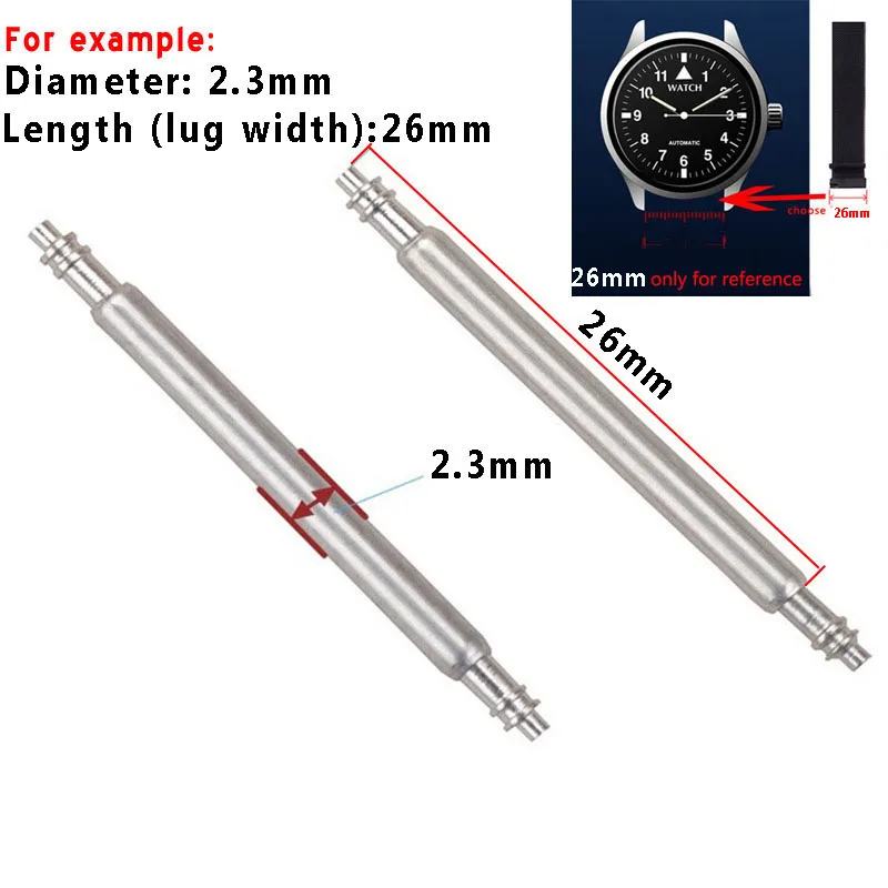 Two bar Diameters: 2.0mm 2.3mm; Three Lengths (Lug width): 20mm 22mm 26mm.