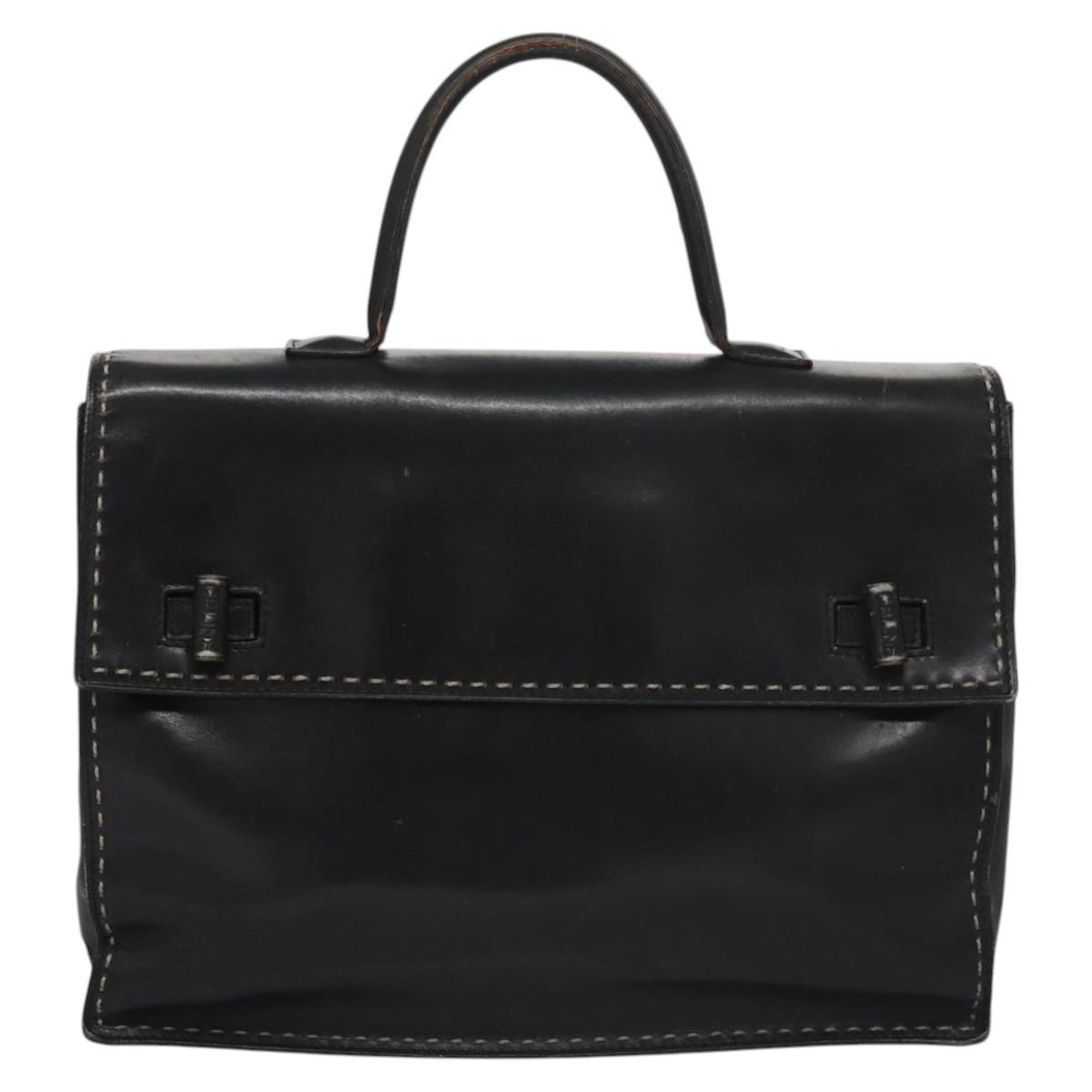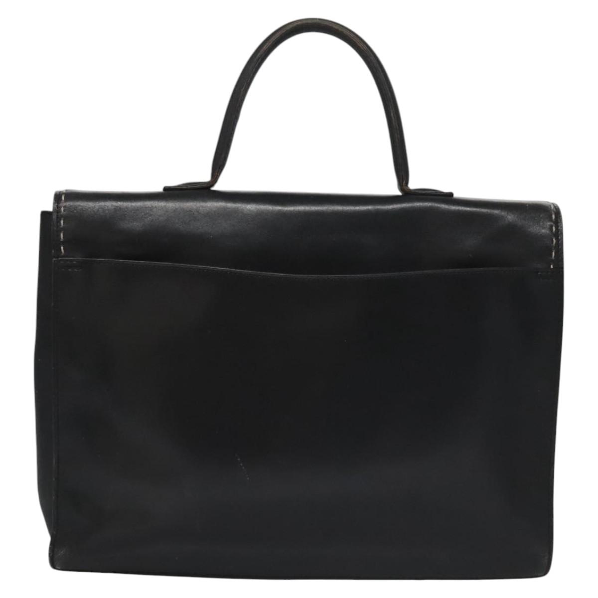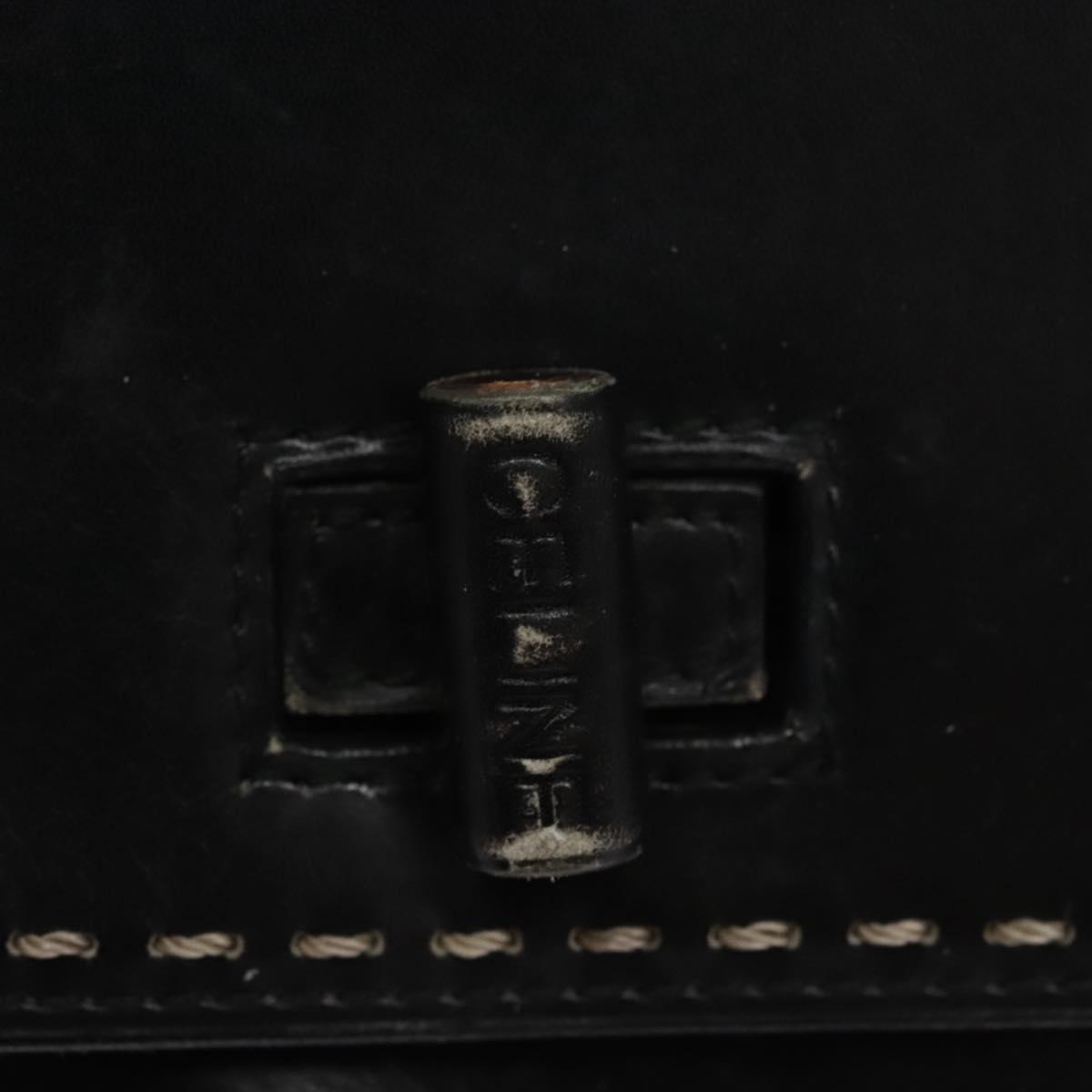 CELINE Hand Bag Leather Black Auth 114646