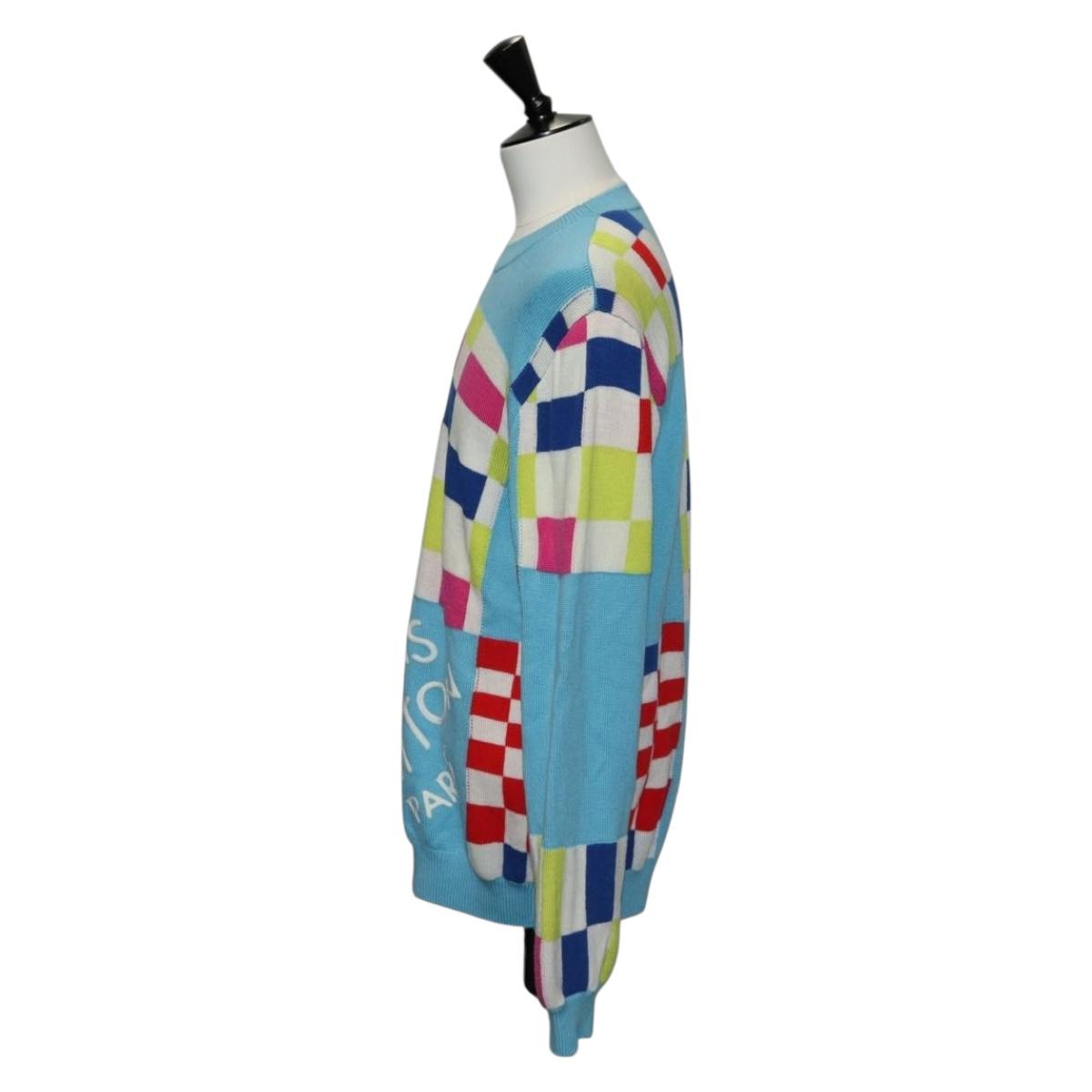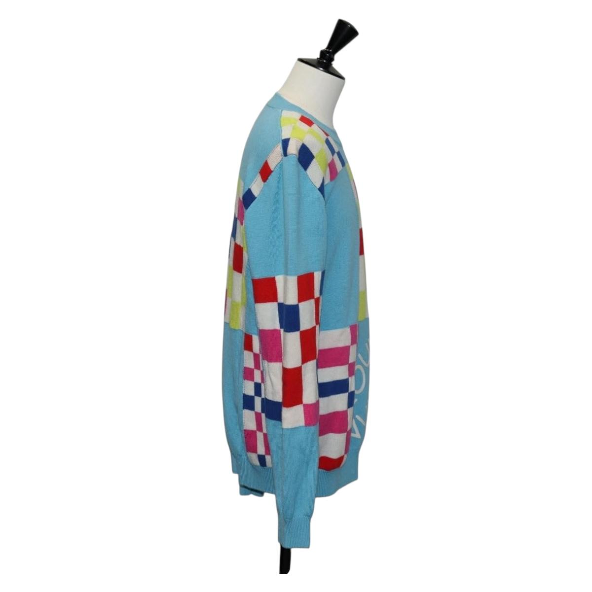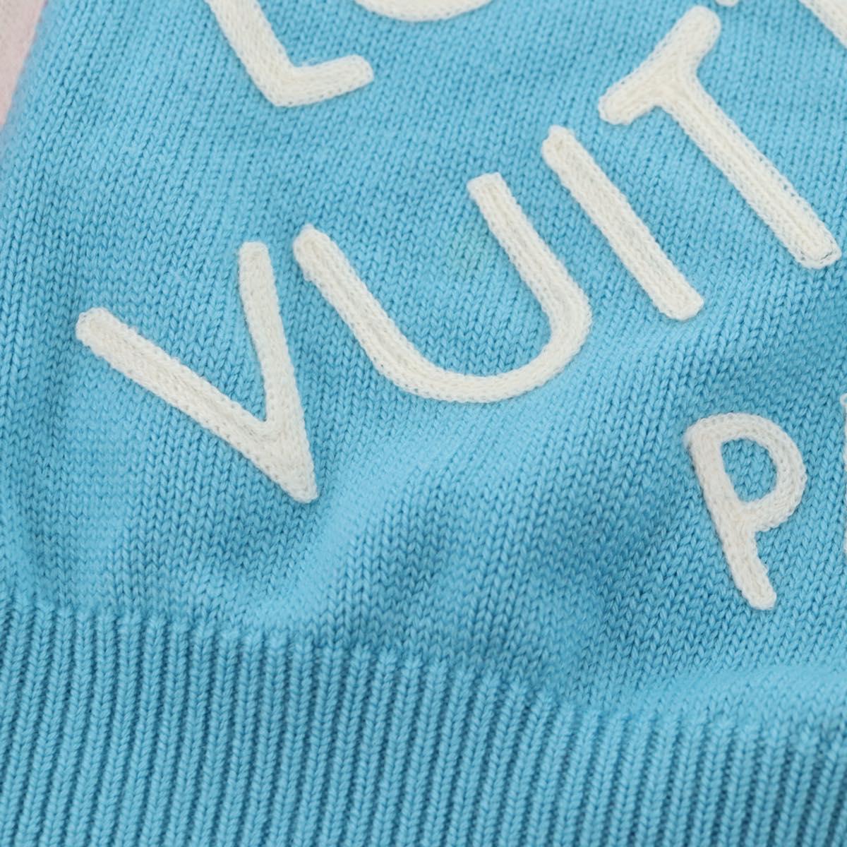 LOUIS VUITTON Damier Knit Sweater Jacket Wool Light Blue LV Auth 136318M