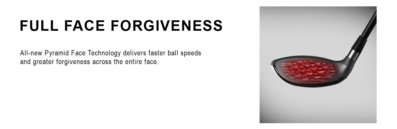 All-new Pyramid Face Technology delivers faster ball speeds and greater forgiveness across the entire face.