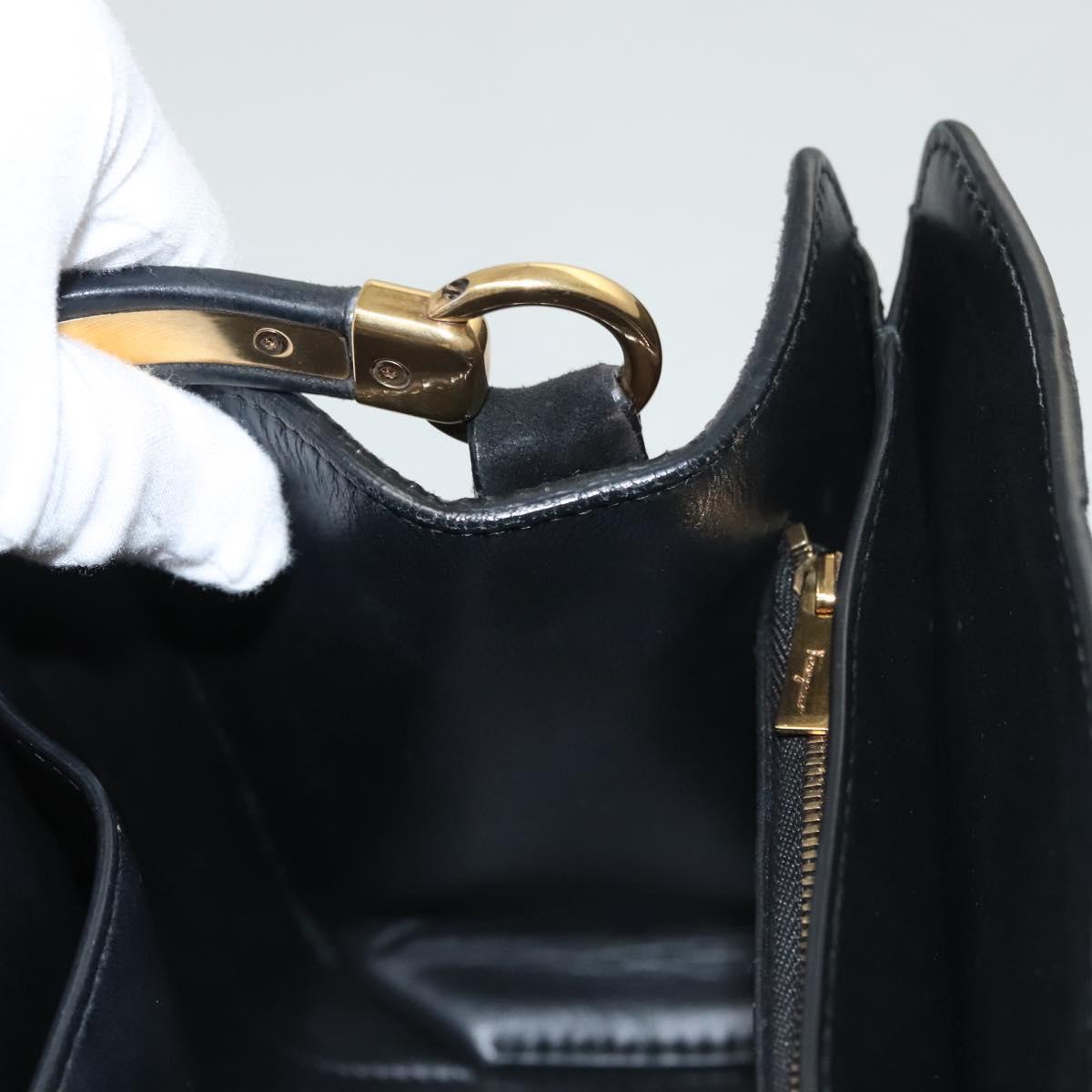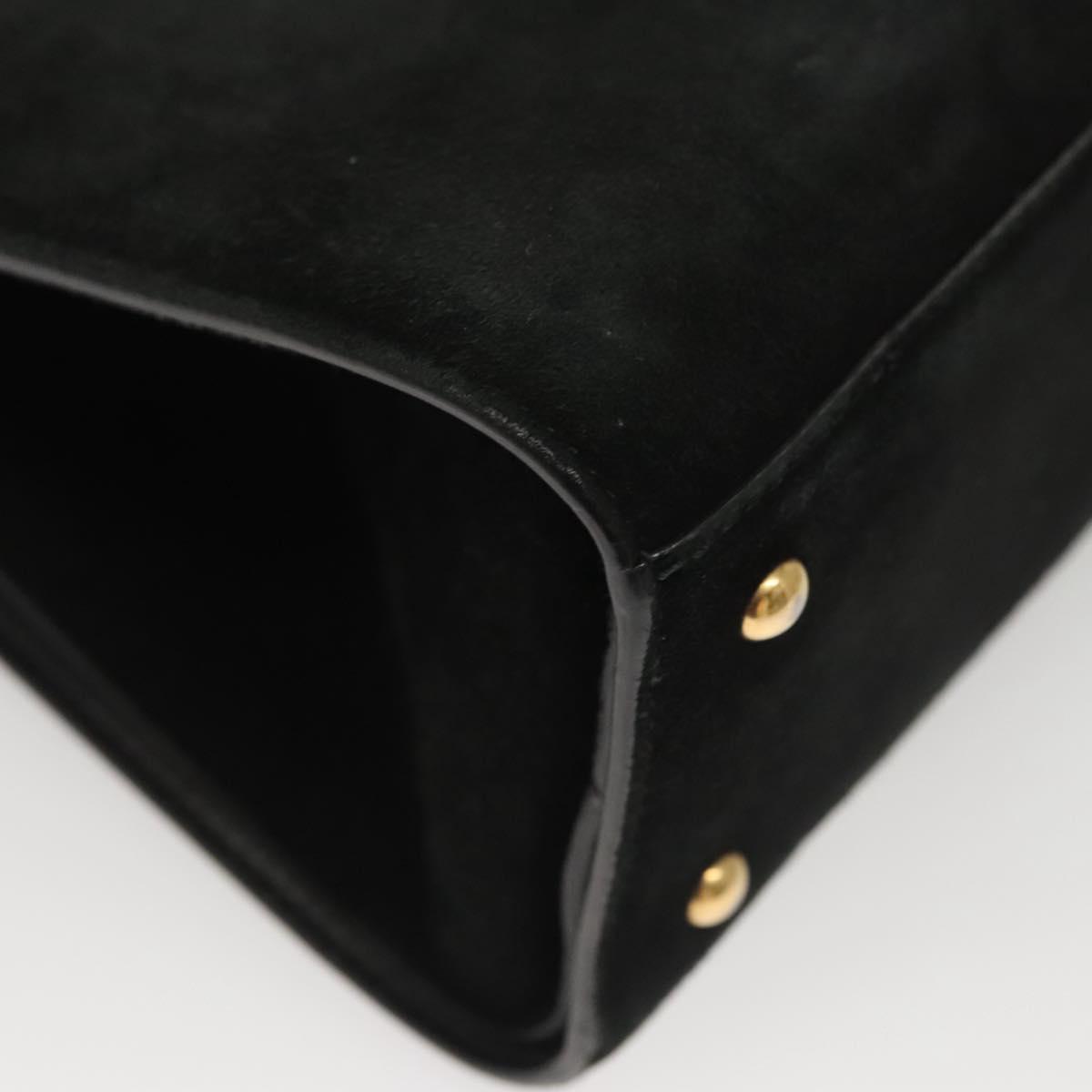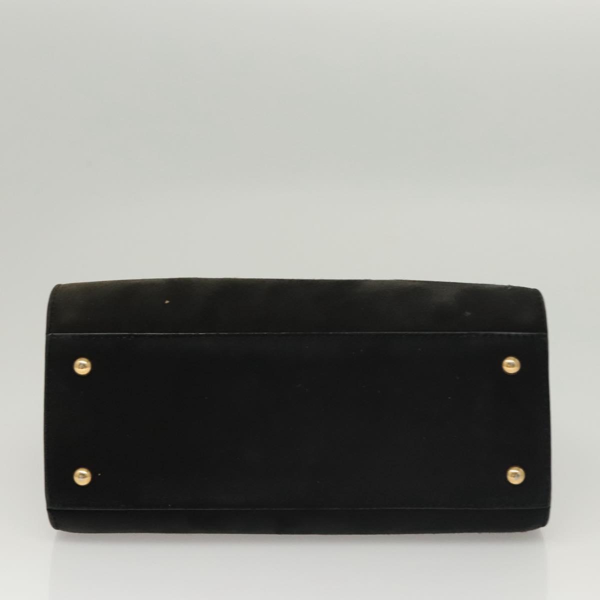 Salvatore Ferragamo Gancini Hand Bag Suede Gold Black Auth 119192