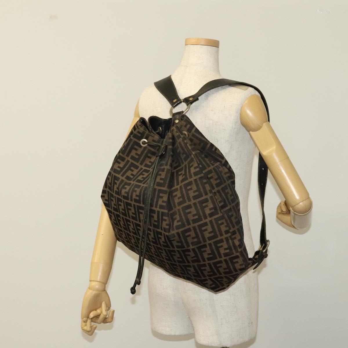 FENDI Zucca Canvas Backpack Brown Black gold Auth ep8792