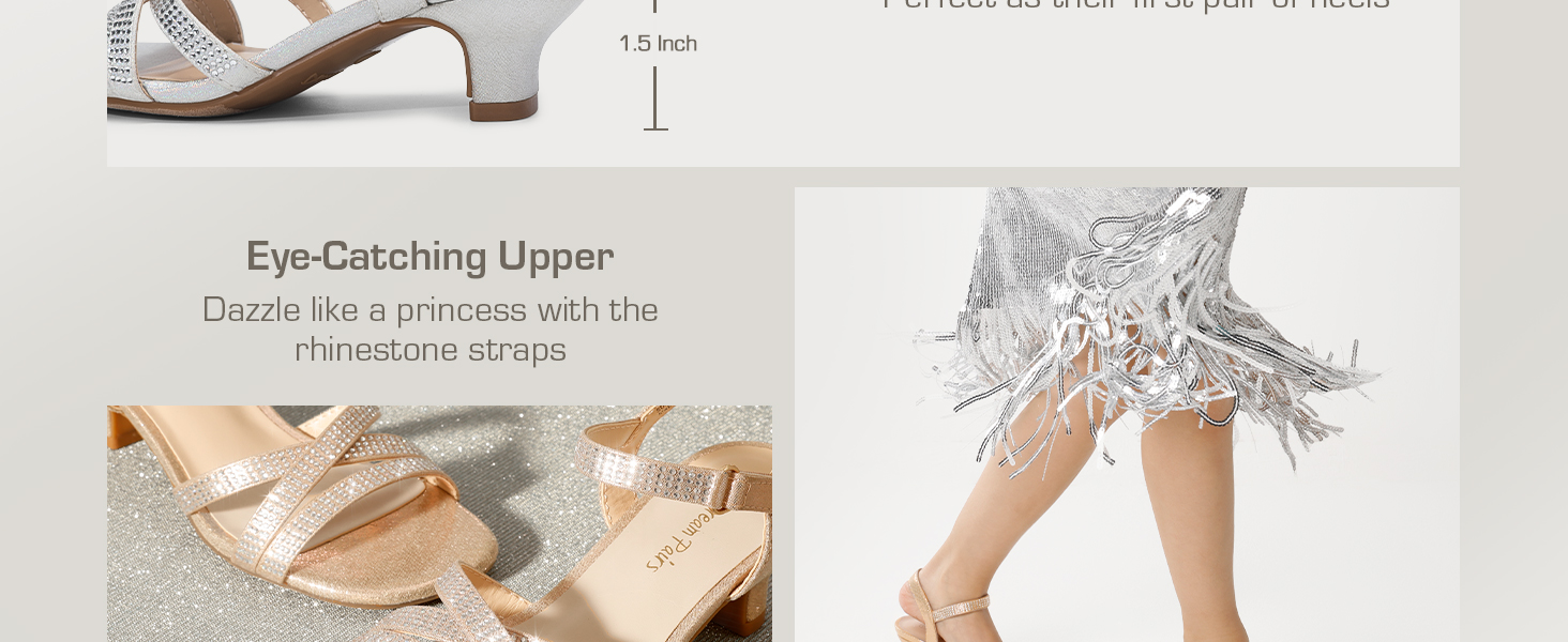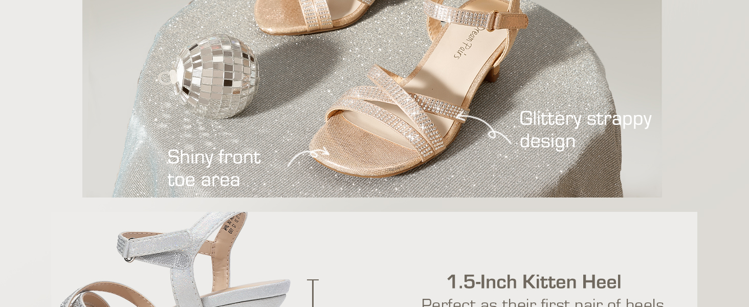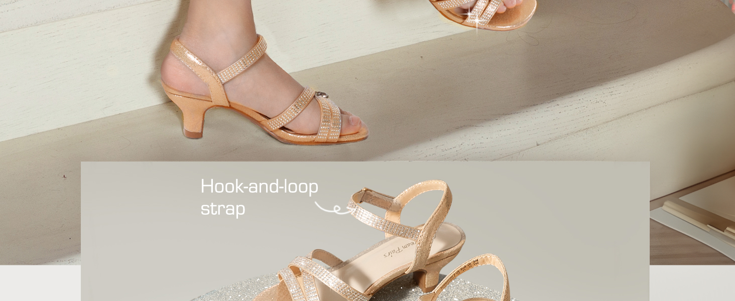 • Party Essential: These heeled sandals for girls feature a glittering rhinestone straps and kitten heel that is eye-catching and stylish.