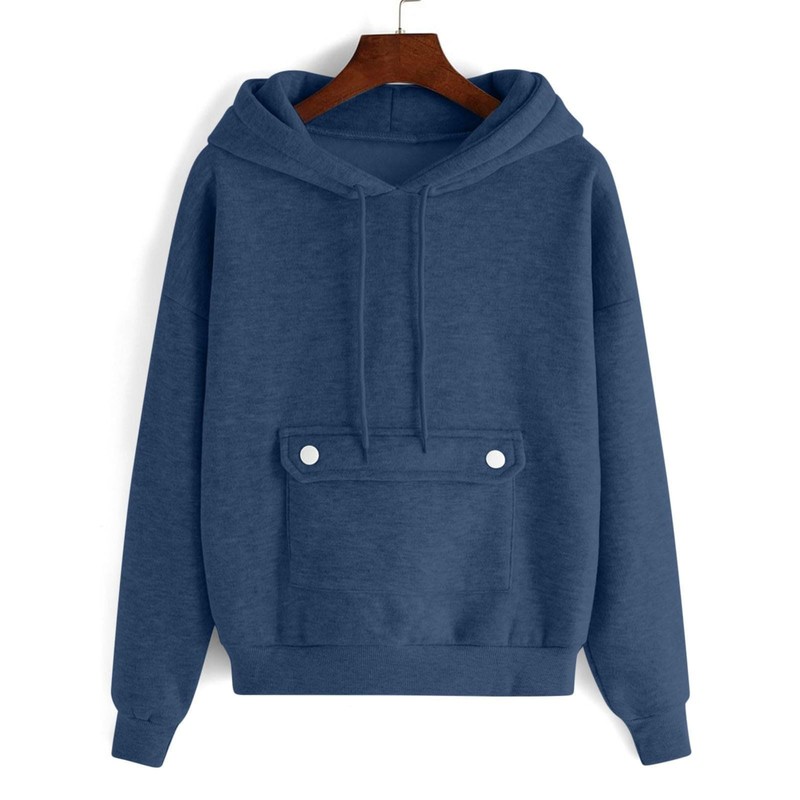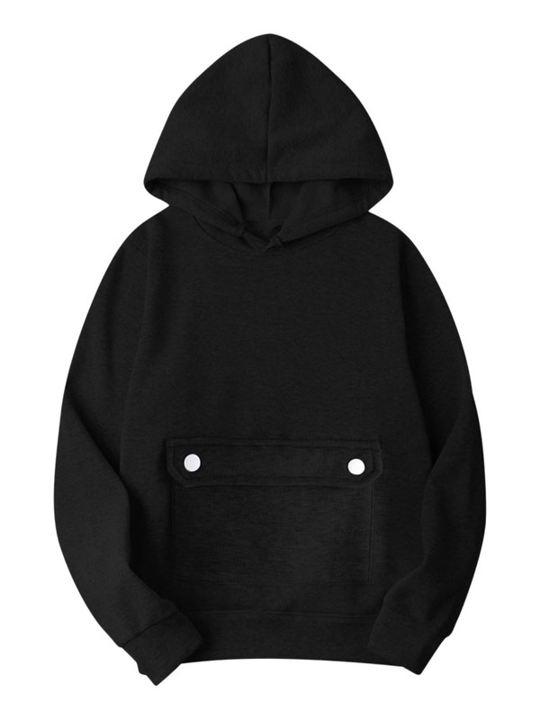 The front big flap pocket is not only a functional storage space for small items like keys or phones but also a stylish design element that gives the sweatshirt a unique look.