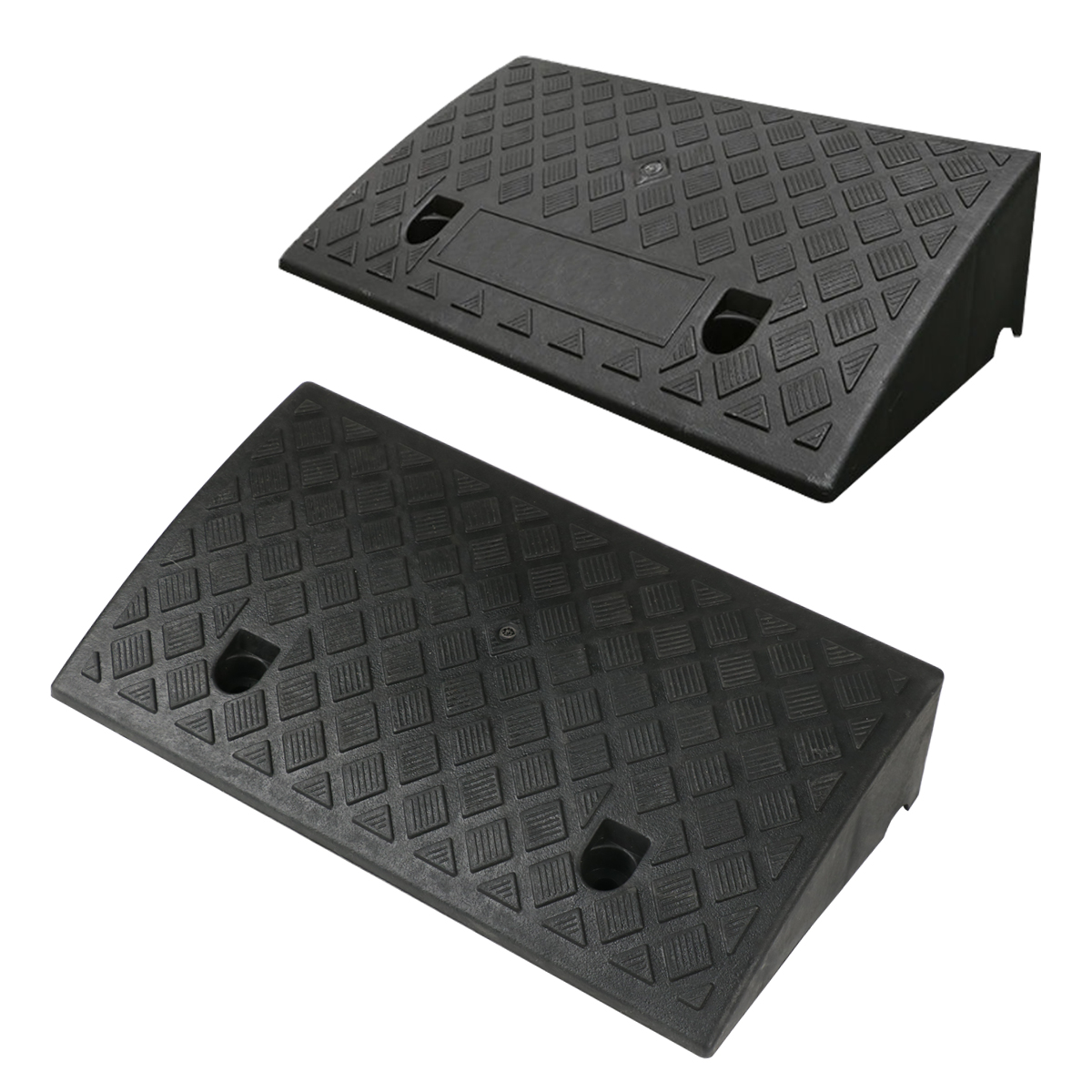Versatile – The wheelchair ramp can make your life easier in many ways. The threshold ramp allows access for low cars, SUVs, vans, wheelchairs, motorcycles, bicycles, scooters, and carts to curbs or elevated sidewalks. It also serves as a shed ramp, low-car ramp, lawn mower ramp, truck ramp, RV curb ramp, and squat ramp. The rubber curb ramp effortlessly assists heavy equipment in climbing without damaging tires or other components.